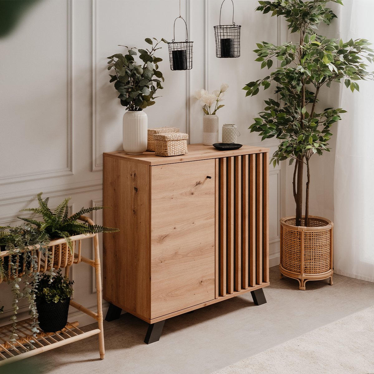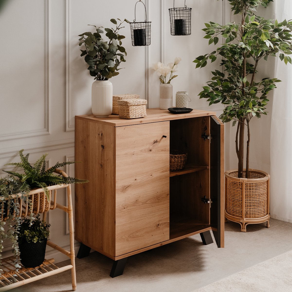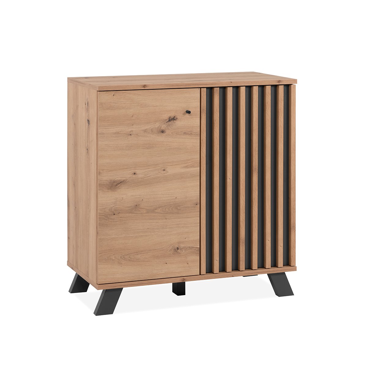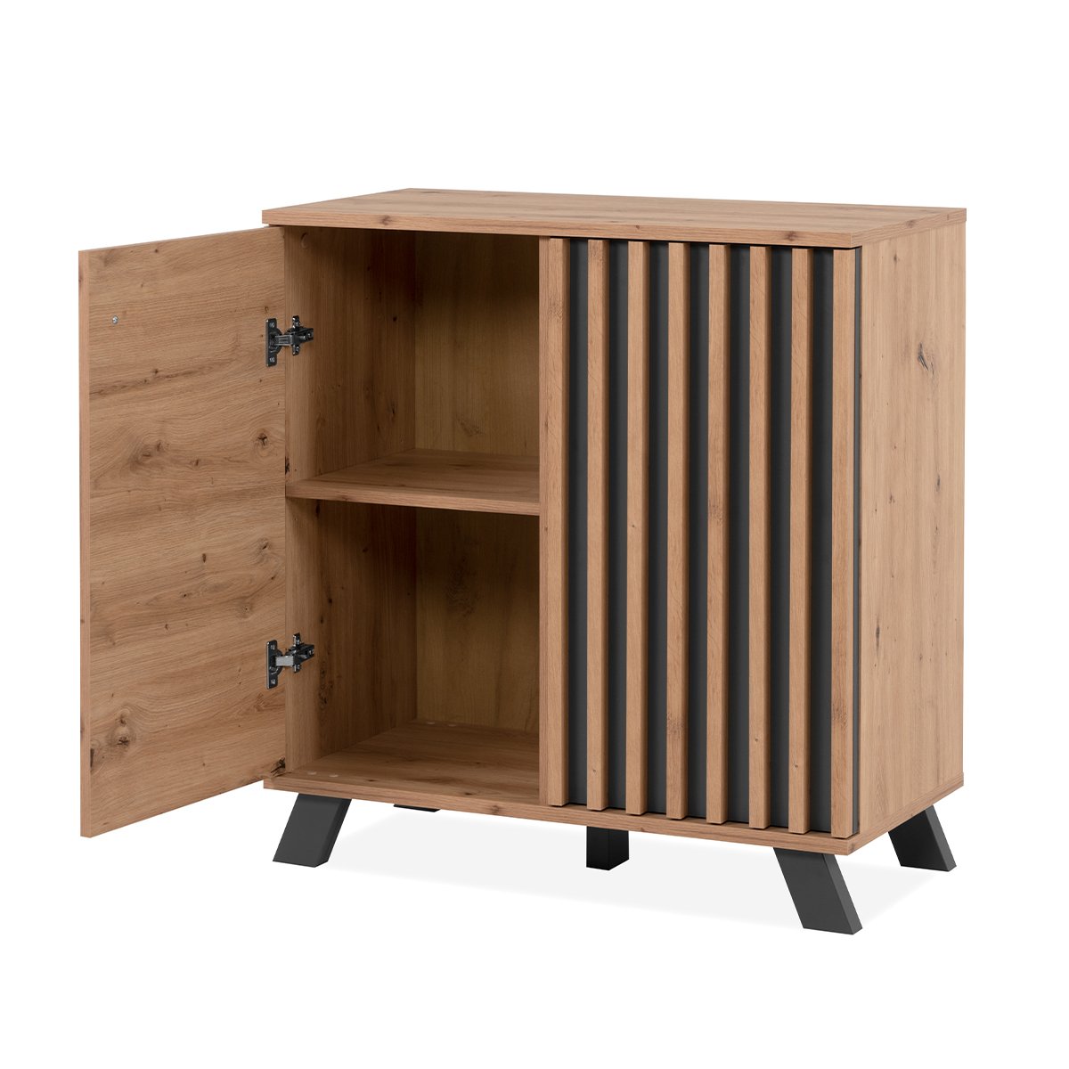 Ontdek onze Dressoir met 2 deuren met eiken ambachtelijke decoratie en antracietgrijs van 80 cm - Lublin. Dit dressoir is ideaal voor kleine ruimtes omdat het geen vloerruimte in beslag neemt. Je kunt er al je spullen naar keuze in opbergen. Het eigentijdse ontwerp past bij alle interieurstijlen. Productkenmerken: Materialen: Spaanplaten / MDF. 2 deuren. Afmetingen van het product: Lengte 80 cm x Breedte 40 cm x Hoogte 85 cm - Nettogewicht: 29,3 kg. Afmetingen van de verpakkingen: Verpakking nr. 1: Lengte 89,5 cm x Hoogte 48 cm x Diepte 10 cm - Bruto gewicht: 15 kg. Verpakking nr. 2: Lengte 92,5 cm x Hoogte 47,5 cm x Diepte 11,5 cm - Bruto gewicht: 18,5 kg. Totaal bruto gewicht: 33,5 kg.