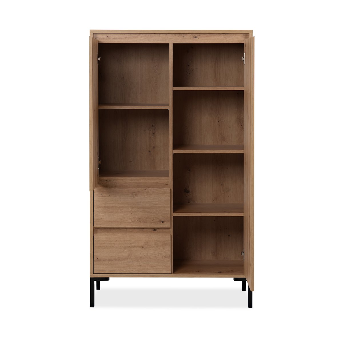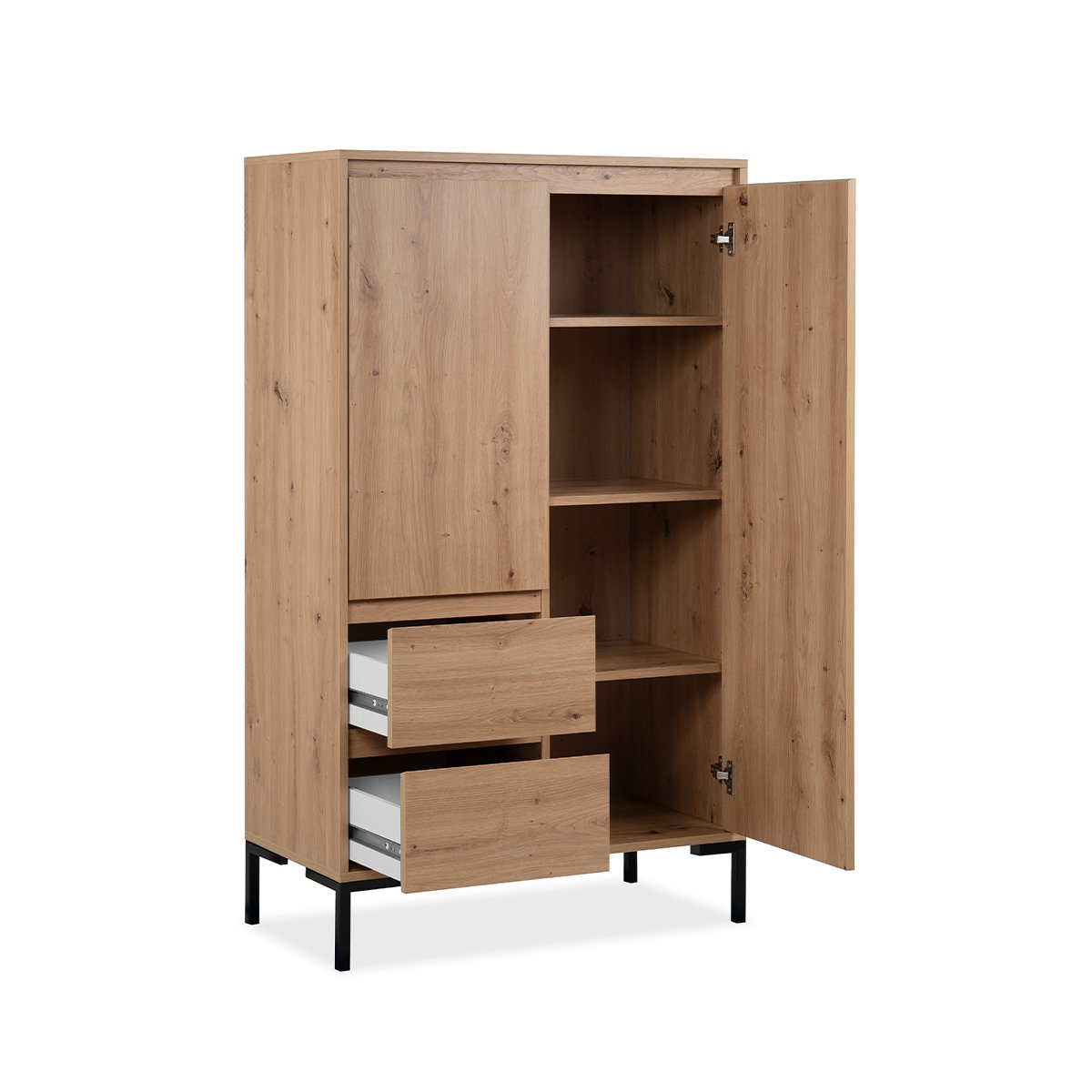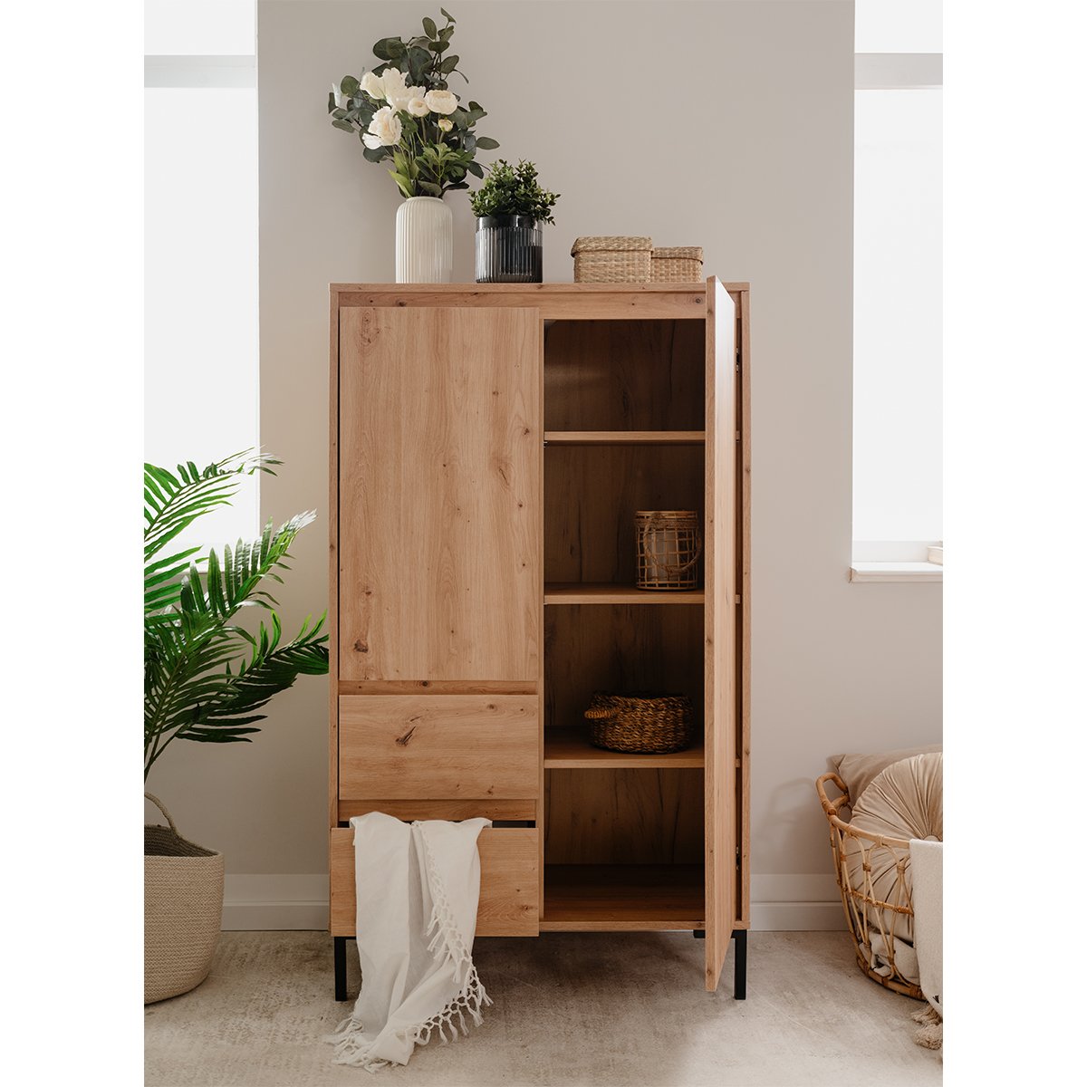 Ontdek onze hoge buffetkast met 2 deuren, 2 laden en 2 planken, H139 cm - Plock. Dankzij de verticale opbergruimte verliest u geen vloerruimte. De vele opbergmogelijkheden stellen u in staat om al uw spullen naar wens te organiseren en op te bergen. Deze buffetkast biedt extra opbergruimte in uw interieur en voegt een warme uitstraling toe dankzij het decor in ambachtelijk eiken. Productkenmerken: Materialen: Spaanplaten / Metalen poten. 2 deuren. 2 laden. 4 planken. Ambachtelijk eiken decor. Productafmetingen: Lengte 81 cm x Breedte 40 cm x Hoogte 139 cm - Nettogewicht: 47,5 kg. Afmetingen van de pakketten: Pakket nr. 1: Lengte 111,5 cm x Hoogte 48,5 cm x Diepte 13,5 cm - Bruto gewicht: 26,7 kg. Pakket nr. 2: Lengte 133,5 cm x Hoogte 48 cm x Diepte 10,5 cm - Bruto gewicht: 25 kg. Totaal bruto gewicht: 51,7 kg.
