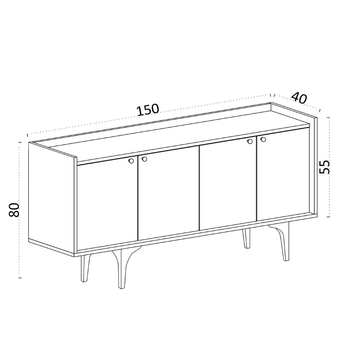 Productkenmerken: Gemaakt van 100% melamine spaanplaten. FSC-gecertificeerd, wat betekent dat het product voor 100% is gemaakt van hout uit duurzaam beheerde bossen. Hoogte van de poten: 25 cm. Productafmetingen: breedte 40 cm x lengte 150 cm x hoogte 80 cm - Nettogewicht: 36,9 kg. Verpakkingsafmetingen: Verpakking nr. 1: lengte 156 cm x hoogte 45 cm x diepte 9 cm - Brutogewicht: 28 kg. Verpakking nr. 2: lengte 49 cm x hoogte 45 cm x diepte 16 cm - Brutogewicht: 10 kg. Totaal brutogewicht: 38 kg.