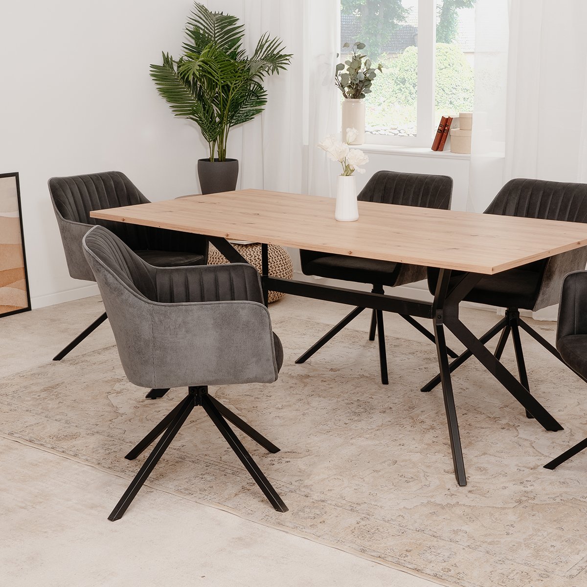 Productkenmerken: Draaistoel 360°. Metalen frame. Bekleding in 2 kleuren ? rugleuning. Interieur met stiksels. Metalen frame. Binnenstof: vintage microvezel. Stof aan de achterkant: grijze ribfluweel. Metalen poten. Productafmetingen:Lengte 60 cm x Hoogte 81 cm x Breedte 58,5 cm. Nettogewicht: 6,4 kg. Verpakkingsafmetingen:Pakket nr. 1: Lengte 66 cm x Hoogte 53,5 cm x Breedte 62,5 cm. Totaal bruto gewicht: 7,4 kg.