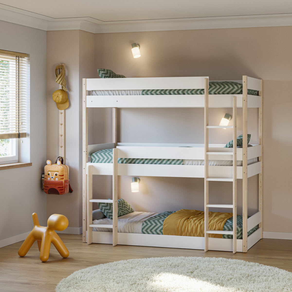 - 3 slaapplaatsen in één bed, ideaal voor grote gezinnen of logeerkamers.