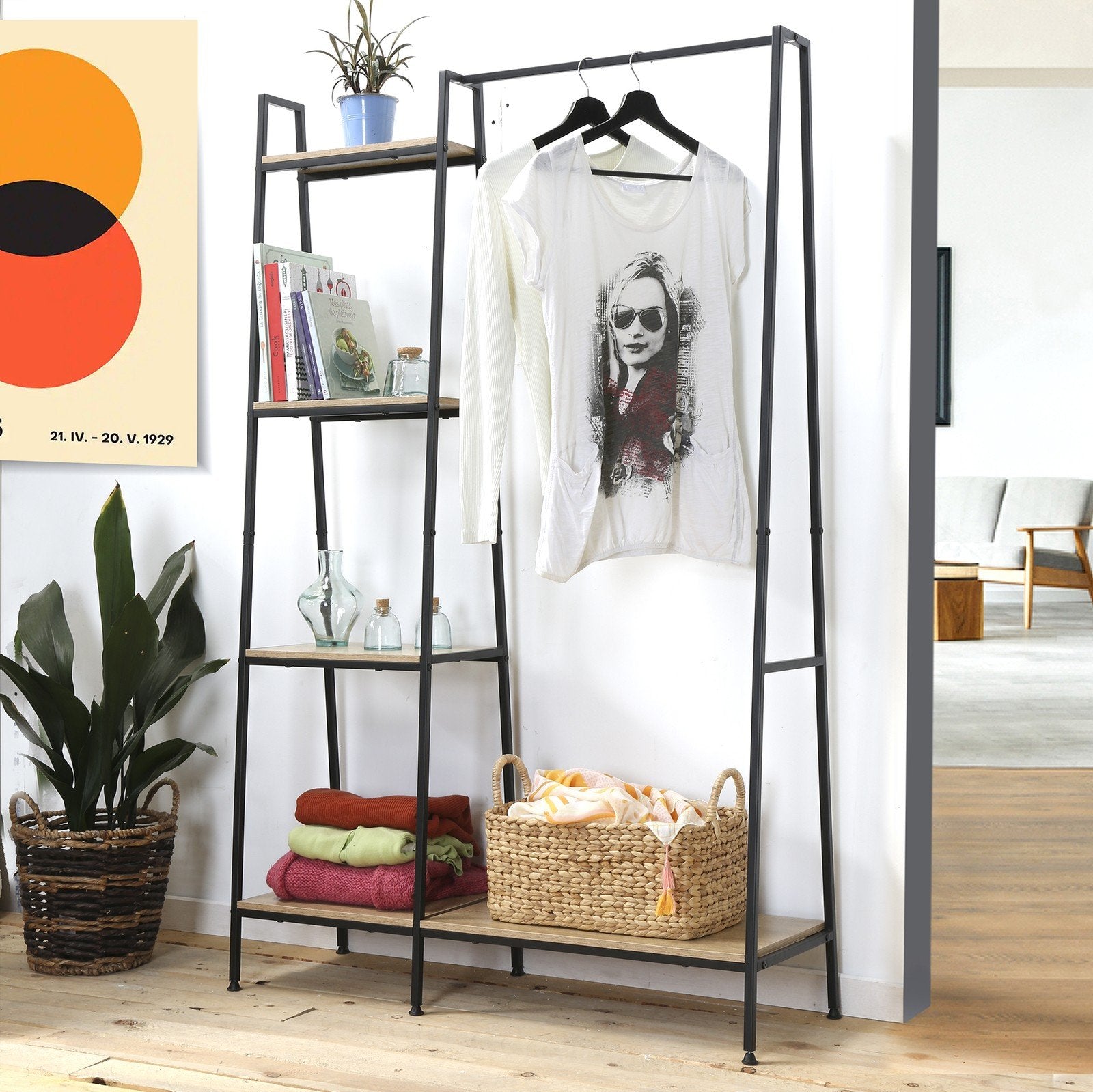 Ontdek onze kleerkast met 1 lage plank en 4 legplanken H160 cm, de ideale opbergcombinatie om een inkomhal, een gang of een dressing in te richten. Dit meubel is gemaakt van houten panelen en is verkrijgbaar in een groot aantal kleuren en afwerkingen. Het is ook verkrijgbaar in een groot aantal kleuren en afwerkingen. Dit meubel is gemaakt van resistente houten panelen bedekt met een imitatie eiken afwerking. De structuur is gemaakt van mat zwart metaal. De structuur is gemaakt van matzwart metaal, dus hij zal jaren meegaan. Deze meubelset zal prachtig staan in uw huis of kantoor! Dit meubelstuk arriveert bij u thuis in Kit met een briefje en alle benodigde schroeven, u zult maar weinig tijd nodig hebben om het op poten te zetten! Kenmerken van de kleerkast: Materialen: 12 mm resistente spaanplaat / Zwart mat stalen structuur.Bevestiging aan de muur. Afmetingen: B 101 x D 35 x H 160 cm . Gewicht : 11.4 Kg