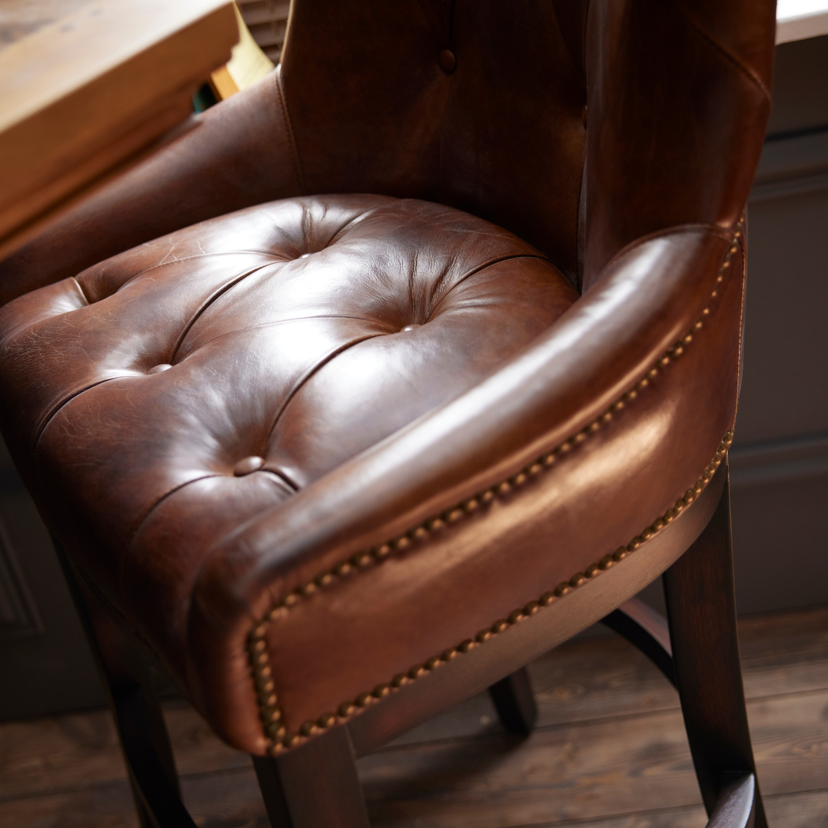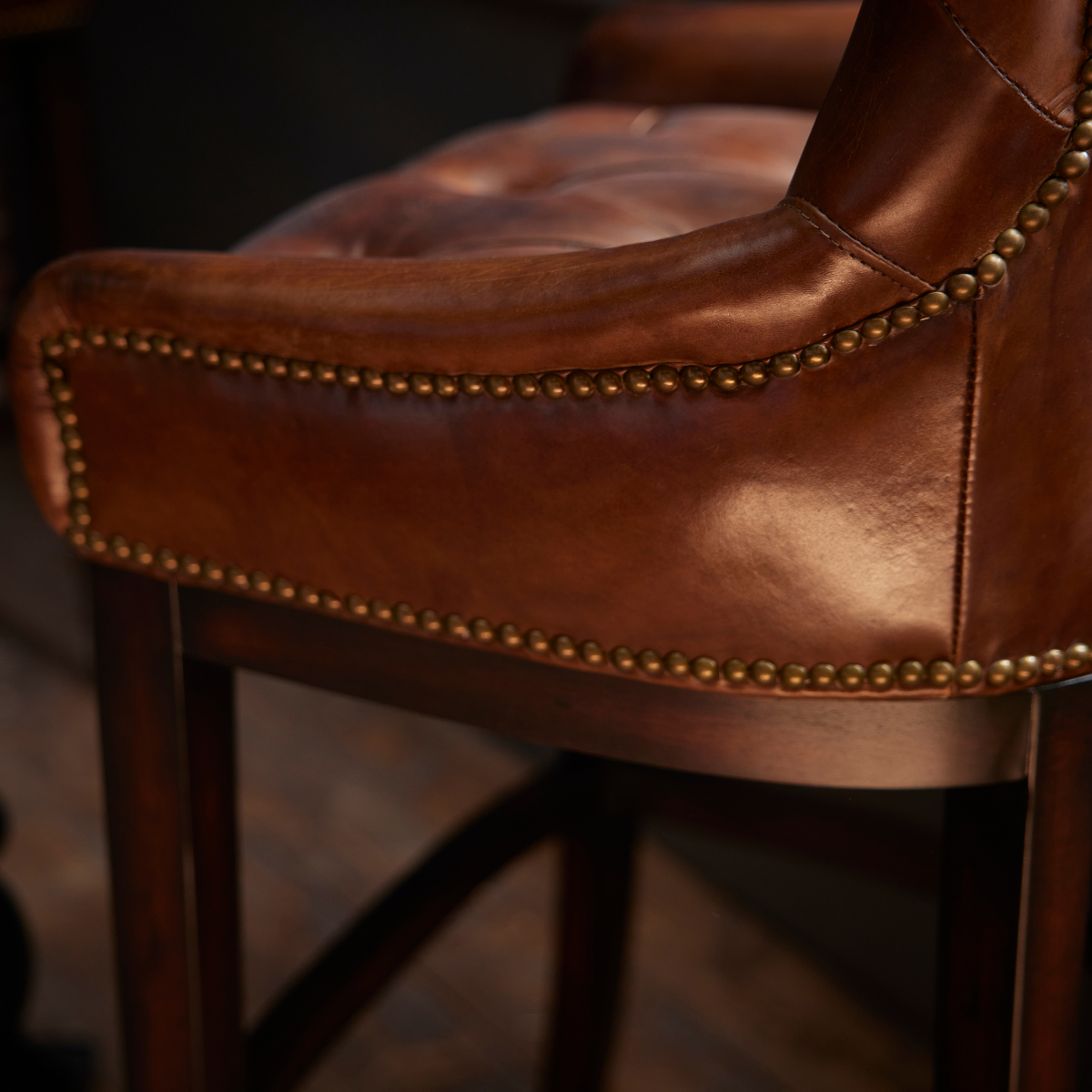 De barkruk GENTLEMEN belichaamt de elegantie van de Engelse clubstijl. De bekleding van verouderd leer onthult een rijke en diepe patina die met de tijd nog mooier wordt. De gekapitoneerde zitting en de omhullende armleuningen bieden uitzonderlijk comfort, terwijl de donkerhouten structuur stabiliteit en verfijning toevoegt. Ideaal rond een bar of toog, combineert het model GENTLEMEN distinctie en gezelligheid voor een warme en uitnodigende sfeer. Materialen: Leer-hout.