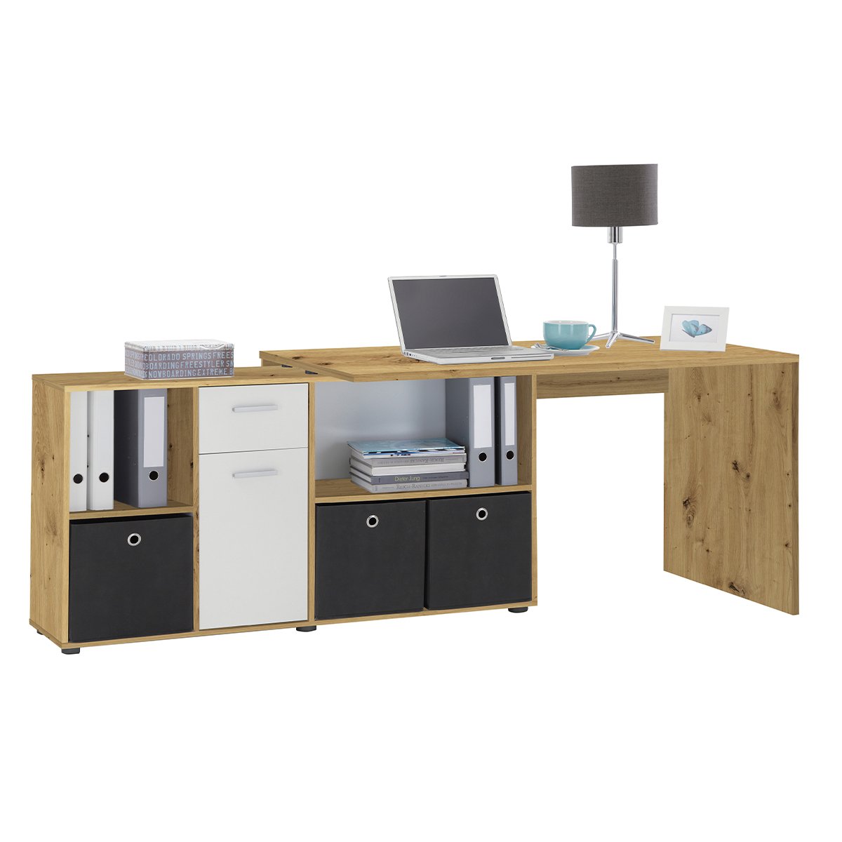 Noodzaak van een werkruimte met ook opbergruimte? Zoek niet verder, onze Modulaire Hoekbureau met Ladeblok, Lade en Opbergplanken - Lex is perfect voor jou! Zeer praktisch en aanpasbaar, dit bureau kan tegen de muur worden geplaatst of in een hoek van je ruimte worden geplaatst en neemt zo minder ruimte in beslag. Het grote aantal compartimenten stelt je in staat om je werkspullen op te bergen: mappen, boeken, papieren en nog veel meer! Ongeacht de stijl van je kamer, vind je de kleur die past bij je interieurdecoratie. Product samenstelling: Melamine spaanplaten Productkenmerken: Keuze bij montage tussen hoekbureau of recht bureau 1 Lade / 1 Deur / 4 Opbergvakken Dikte van de spaanplaten van het bureaublad en de zijpoot: 22 mm Meubel wordt als bouwpakket geleverd. Zelf te monteren / Montagetijd indicatie: 60 minuten Gemaakt van melamine spaanplaten, biedt goede weerstand tegen slijtage, krassen en vlekken PEFC-label: spaanplaten gemaakt van hout uit duurzaam beheerde bossen Gemaakt in Duitsland Productafmetingen: Breedte 135,7 cm x Diepte 135,7 cm x Hoogte 74,2 cm Nettogewicht 51 kg Verpakkingsafmetingen: Pakket nr. 1: Lengte 148,7 cm x Breedte 75,8 cm x Hoogte 7,1 cm - Bruto gewicht 29,68 kg Pakket nr. 2: Lengte 99 cm x Breedte 77,8 cm x Hoogte 10,1 cm - Bruto gewicht 25,20 kg