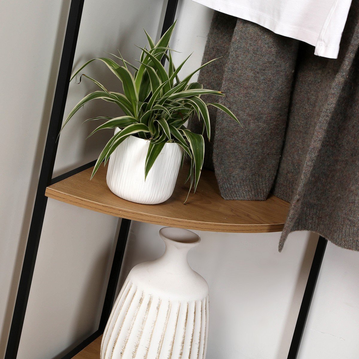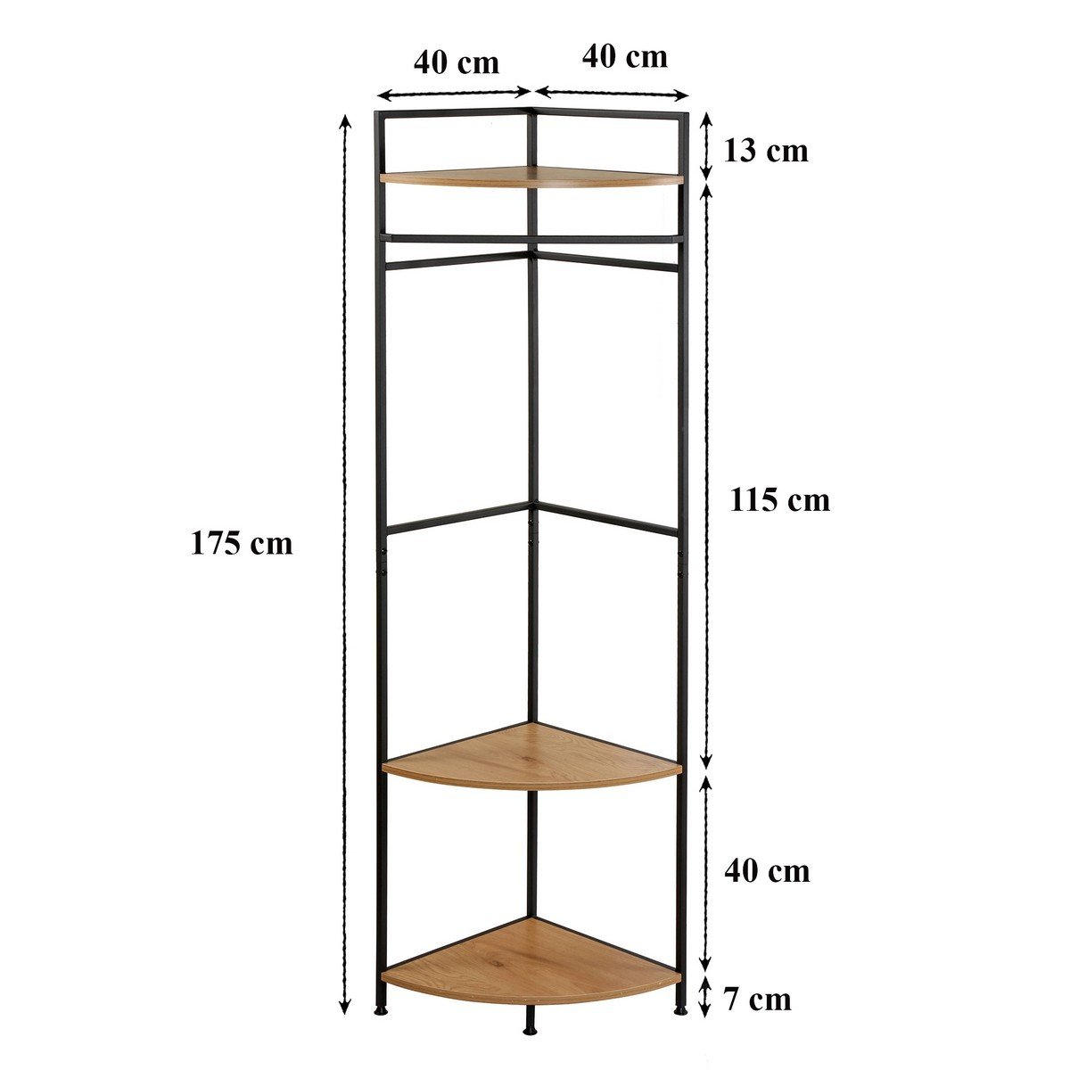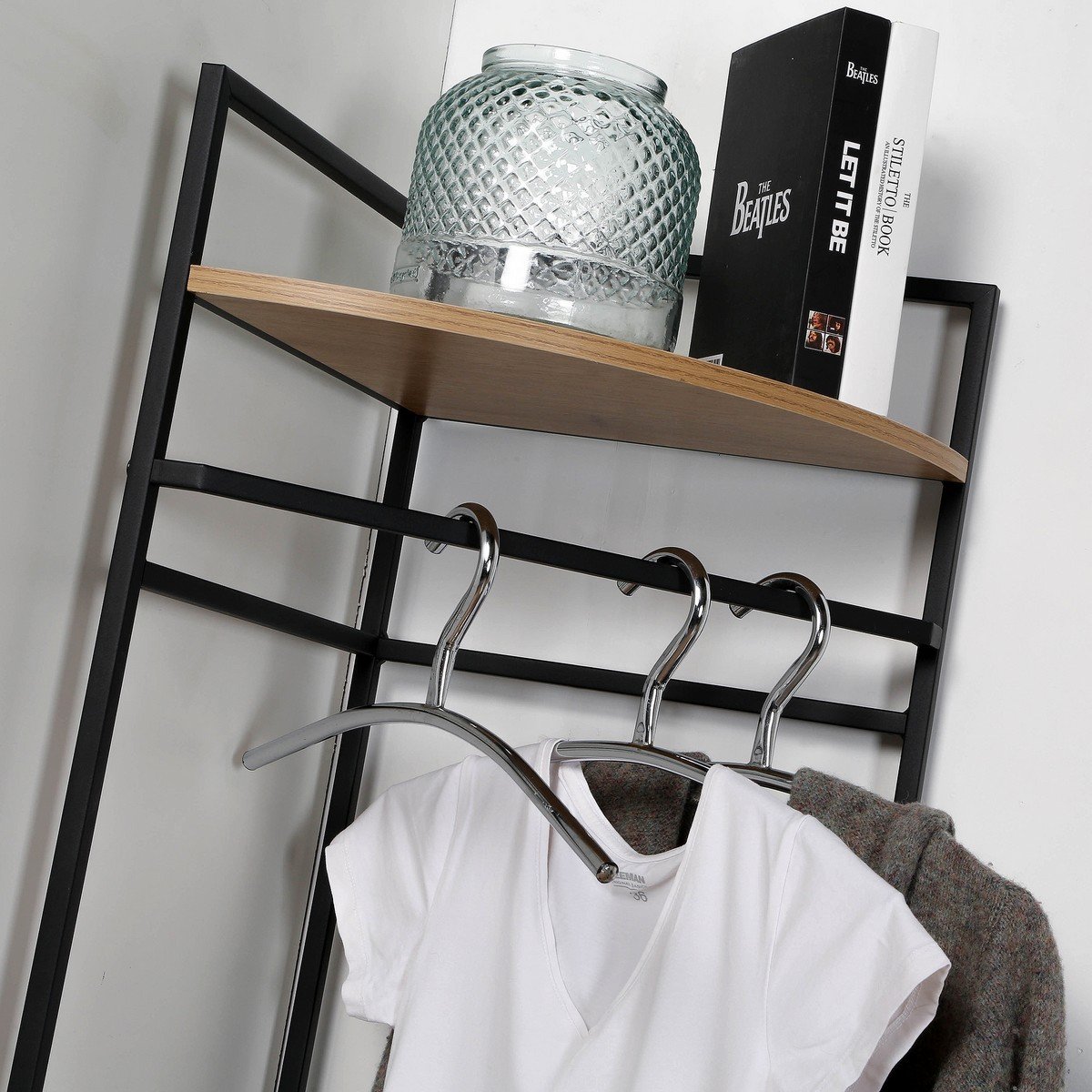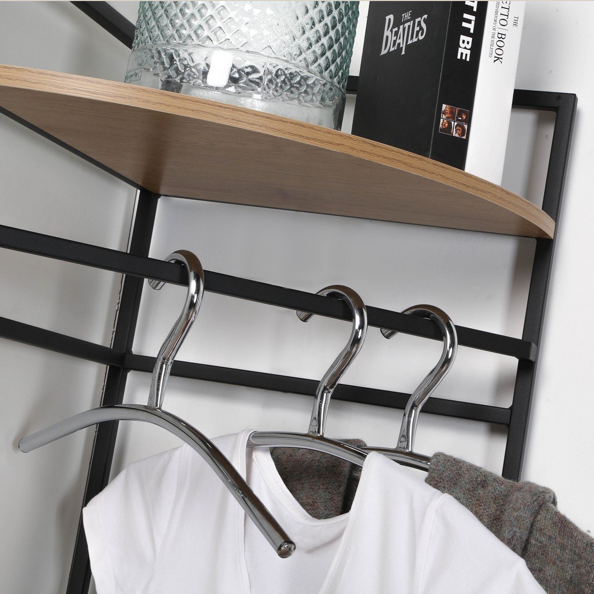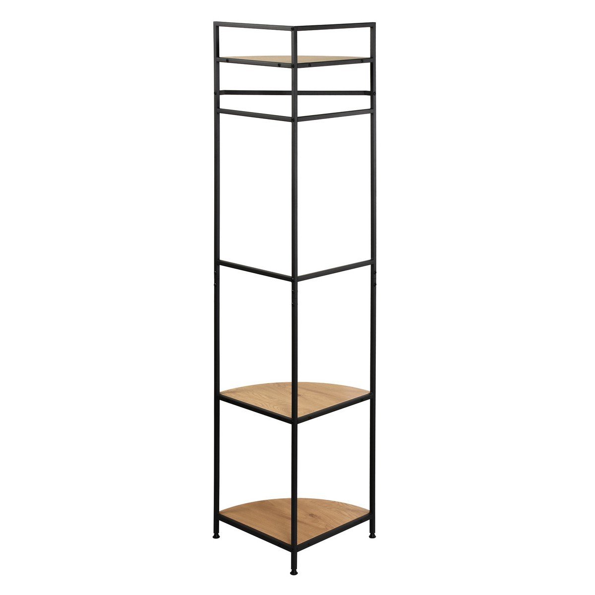 - Structuur van zwart metaal, planken van spaanplaat met eikendecor.