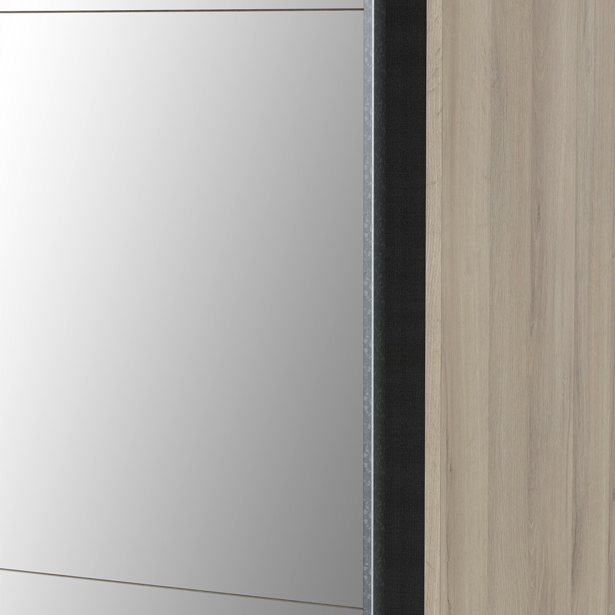 Productkenmerken: Kast met 2 schuifdeuren + spiegel L200 cm Ghost. Gemaakt van 15 en 12 mm spaanplaat. Indeling: Kledingstang (94,3 cm, max. belasting 24 kg), Bovenpaneel (191,5x53,3 cm, max. belasting 43 kg), Plank (95x39,1 cm, max. belasting 15 kg). Productafmetingen: Lengte 194,5 cm x breedte 59,9 cm x hoogte 203 cm - Nettogewicht: 122,17 kg. Verpakkingsafmetingen: Pakket nr. 1: Lengte 74,5 cm x hoogte 9,4 cm x diepte 120,2 cm - Bruto gewicht: 49,8 kg. Pakket nr. 2: Lengte 59 cm x hoogte 5,2 cm x diepte 199 cm - Bruto gewicht: 32,6 kg. Pakket nr. 3: Lengte 58,8 cm x hoogte 6,2 cm x diepte 210,5 cm - Bruto gewicht: 44,1 kg. Totaal bruto gewicht: 126,5 kg.