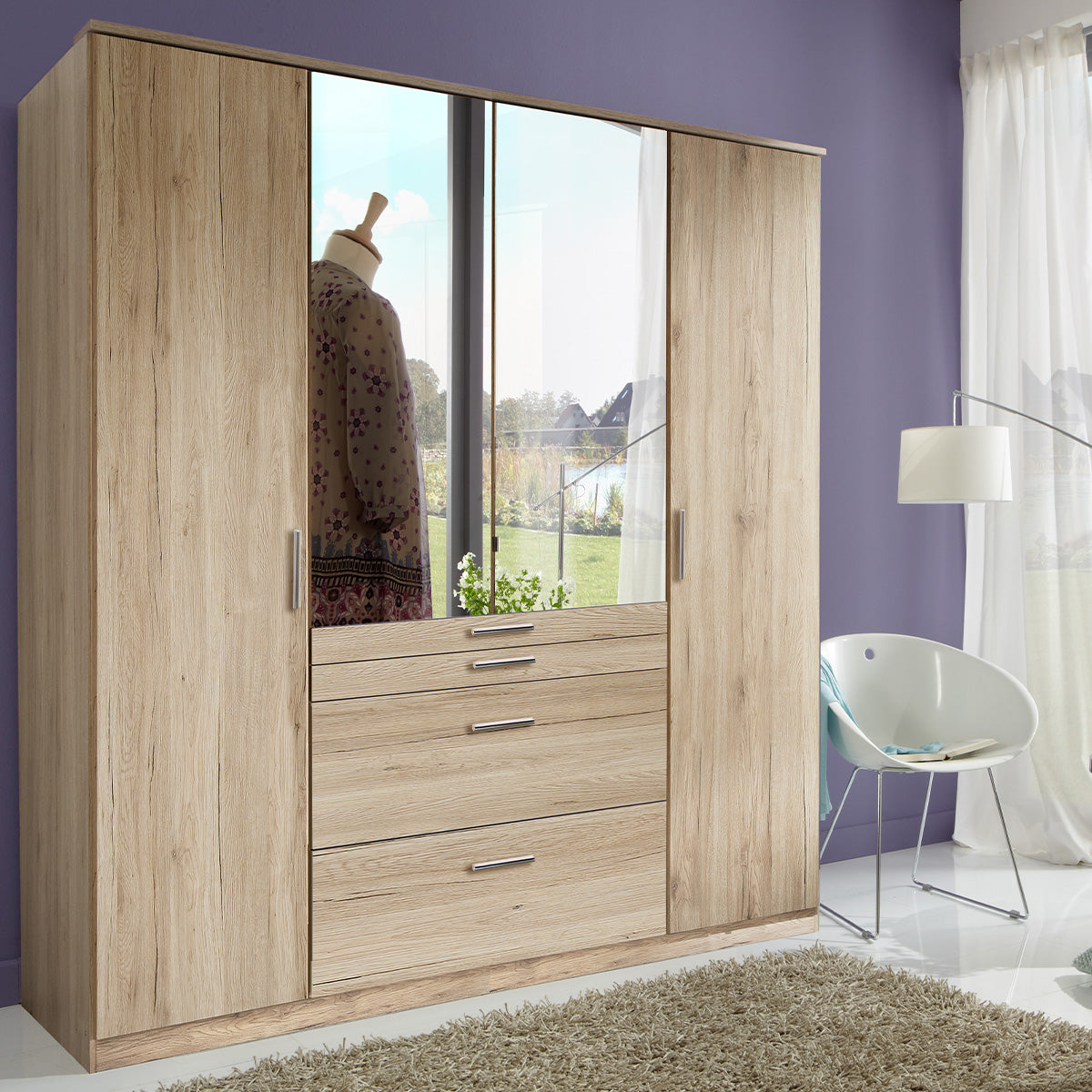 Calicosy - Kast met 4 deuren en 1 spiegel B180 cm - Houtlook