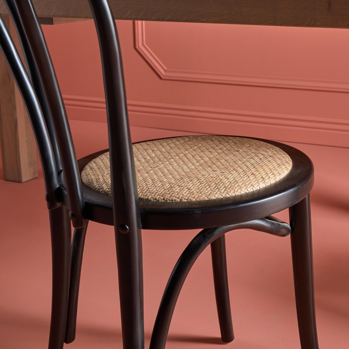 Met een retro bistrodesign uit de jaren 60 is de Troquet-stoel van zwart gelakt massief beukenhout met een zitting van rotan perfect om een authentieke sfeer te creëren. Elegant en comfortabel, deze stoel is ideaal voor een eetkamer die zowel modern als warm is.