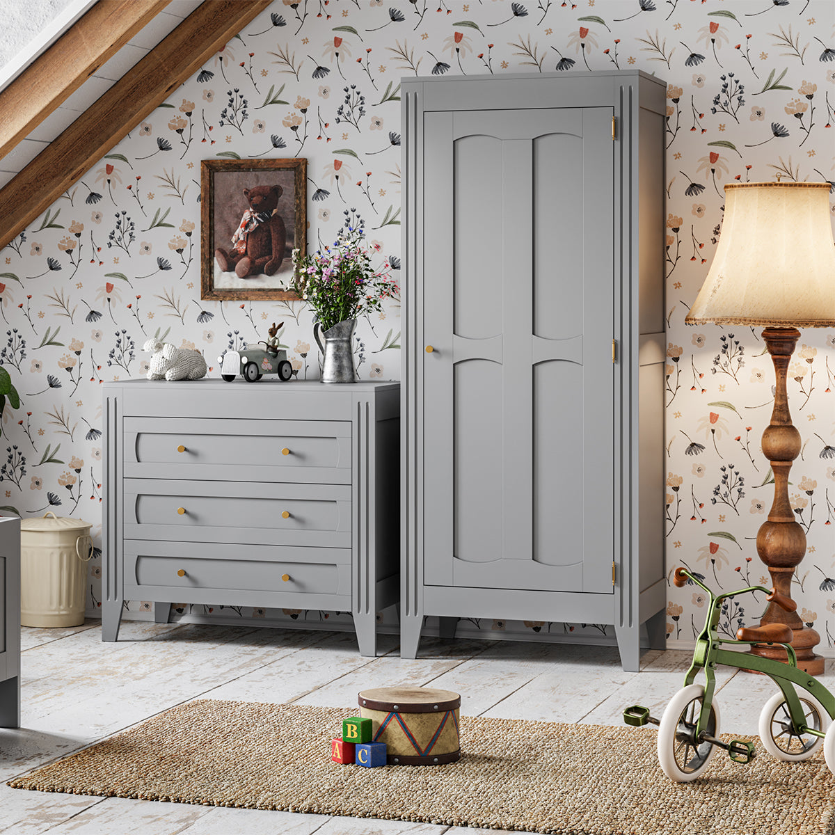 Met zijn gedetailleerde moulure-geest op de structuur en de deuren, evenals de gouden metalen handgrepen, biedt onze Kledingkast met 1 Deur, Planken en Garderobe L80.5 x H196.8 cm - Milenne een echte stijl geïnspireerd op de mooiste Parijse appartementen. De enkele deur opent naar een garderobe gedeelte om uw kleding op te hangen, compleet met twee planken boven en onder om uw spullen op te vouwen of uw reistassen op te bergen. Productbeschrijving: Kleur: verkrijgbaar in wit, grijs of blauw Gemaakt van gelamineerde spaanplaat. Gouden metalen handgrepen. Kast uitgerust met 2 in hoogte verstelbare planken en 1 kledingstang. Verkrijgbaar in het Milenne-assortiment: Kledingkast / Commode Ontworpen in Europa Productafmetingen: Diepte 80,5 cm x Breedte 55,25 cm x Hoogte 196,8 cm - Netto gewicht 52 kg Verpakkingsafmetingen: Pakket nr. 1: Breedte 73 cm x Diepte 202 cm x Hoogte 9,5 cm - Bruto gewicht: 28 kg Pakket nr. 2: Breedte 63 cm x Diepte 88 cm x Hoogte 14,5 cm - Bruto gewicht: 26 kg