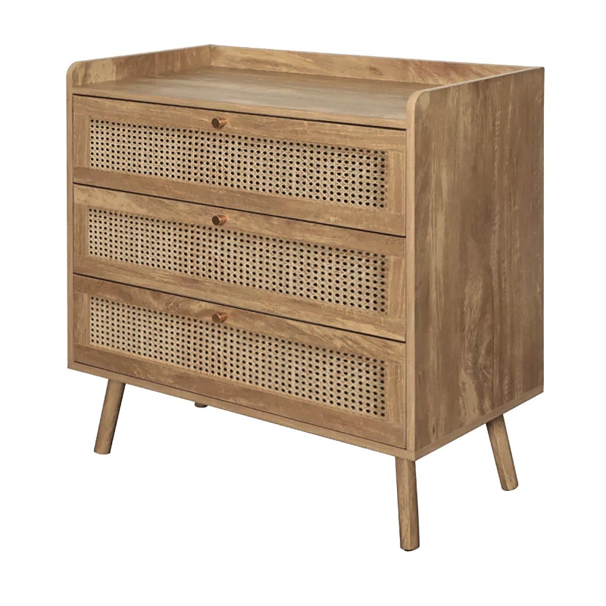 - 3 ladefronten van natuurlijk rotan met een achterkant in houtdecor.