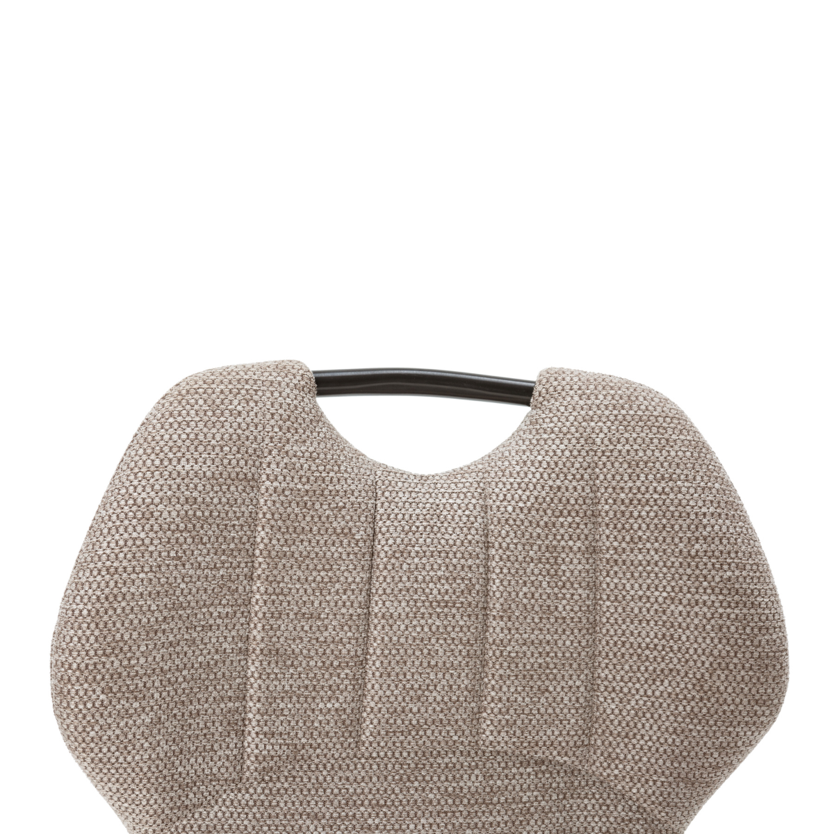 - Zit- en rugleuning: Stof, poten van zwart gelakt metaal.