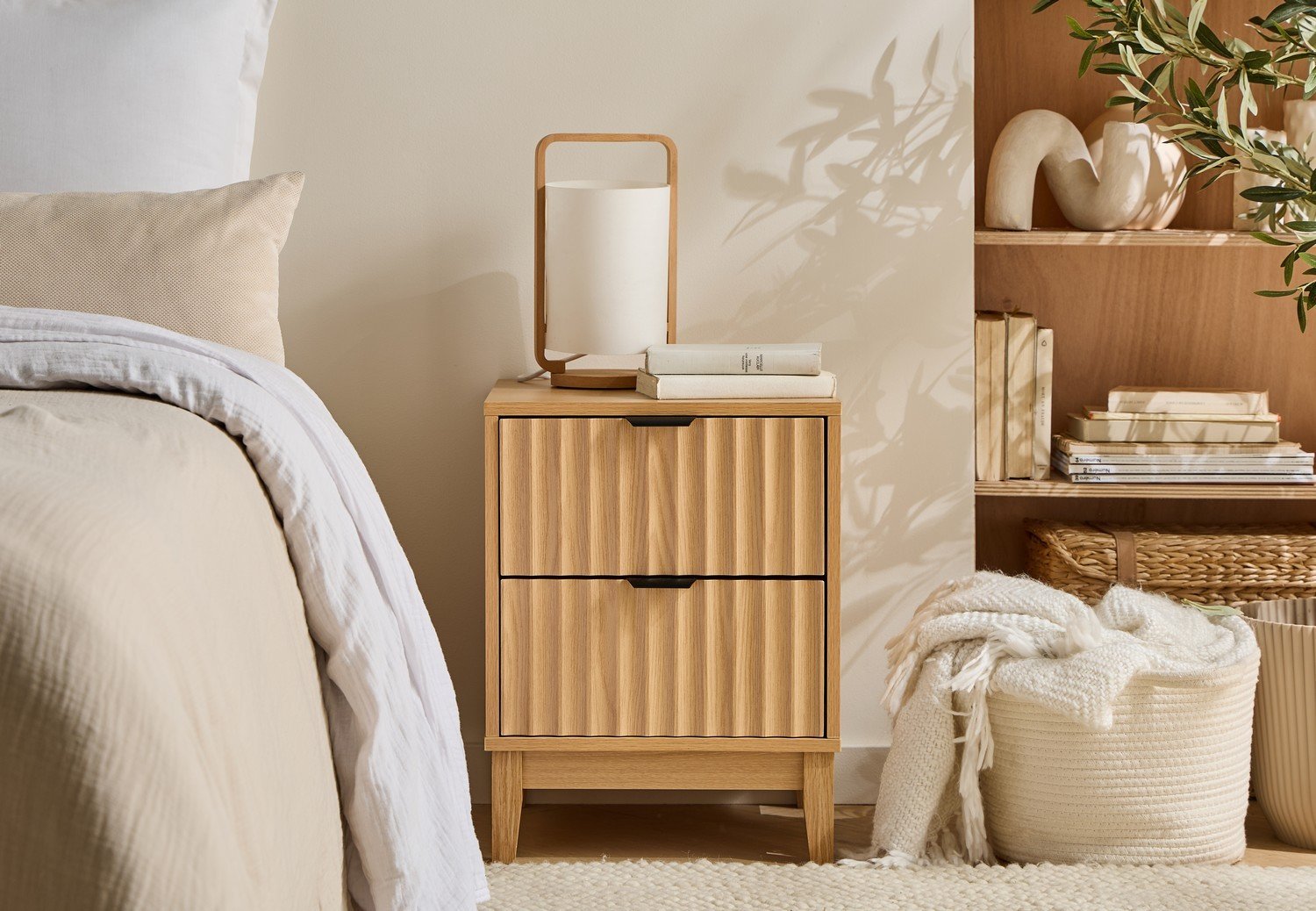 - Gemaakt van spaanplaat, fronten van MDF en poten van massief rubberhout.