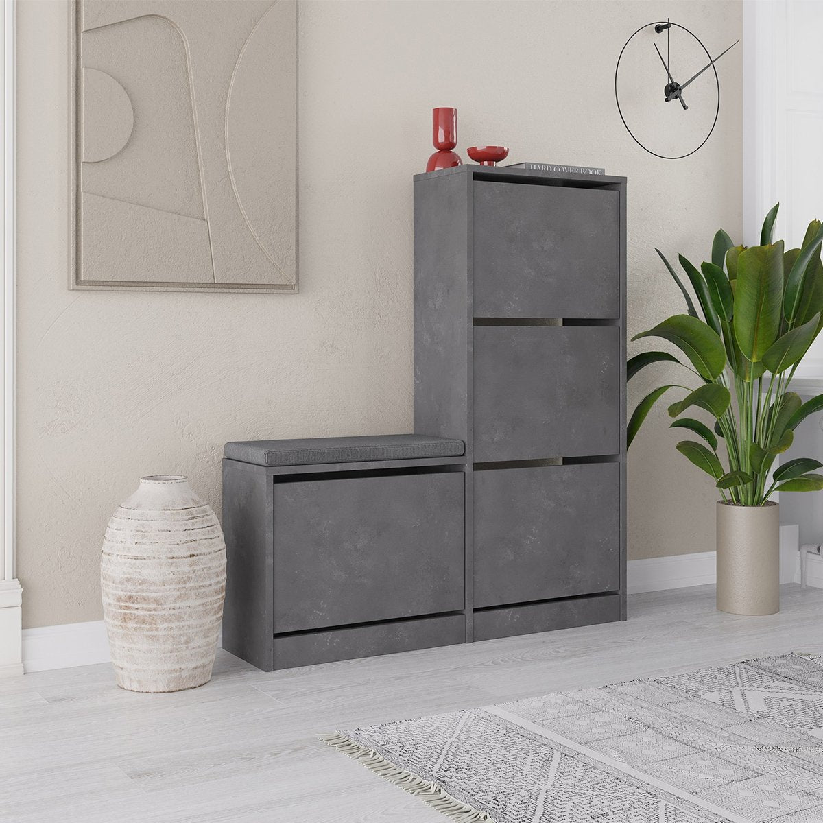 Productkenmerken: Onze schoenenkast is niet alleen een opbergoplossing. Zeer grote opbergruimte voor al uw schoenen. Gemaakt van 100% melamine spaanplaat. FSC-gecertificeerd, wat betekent dat het product is gemaakt van 100% gerecycled hout afkomstig uit duurzaam beheerde bossen. Productafmetingen: breedte 26 cm x lengte 105 cm x hoogte 118,5 cm - nettogewicht: 29,1 kg. Verpakkingsafmetingen: Pakket nr.1: lengte 39,8 cm x hoogte 131,1 cm x diepte 23,2 cm - bruto gewicht: 30 kg.
