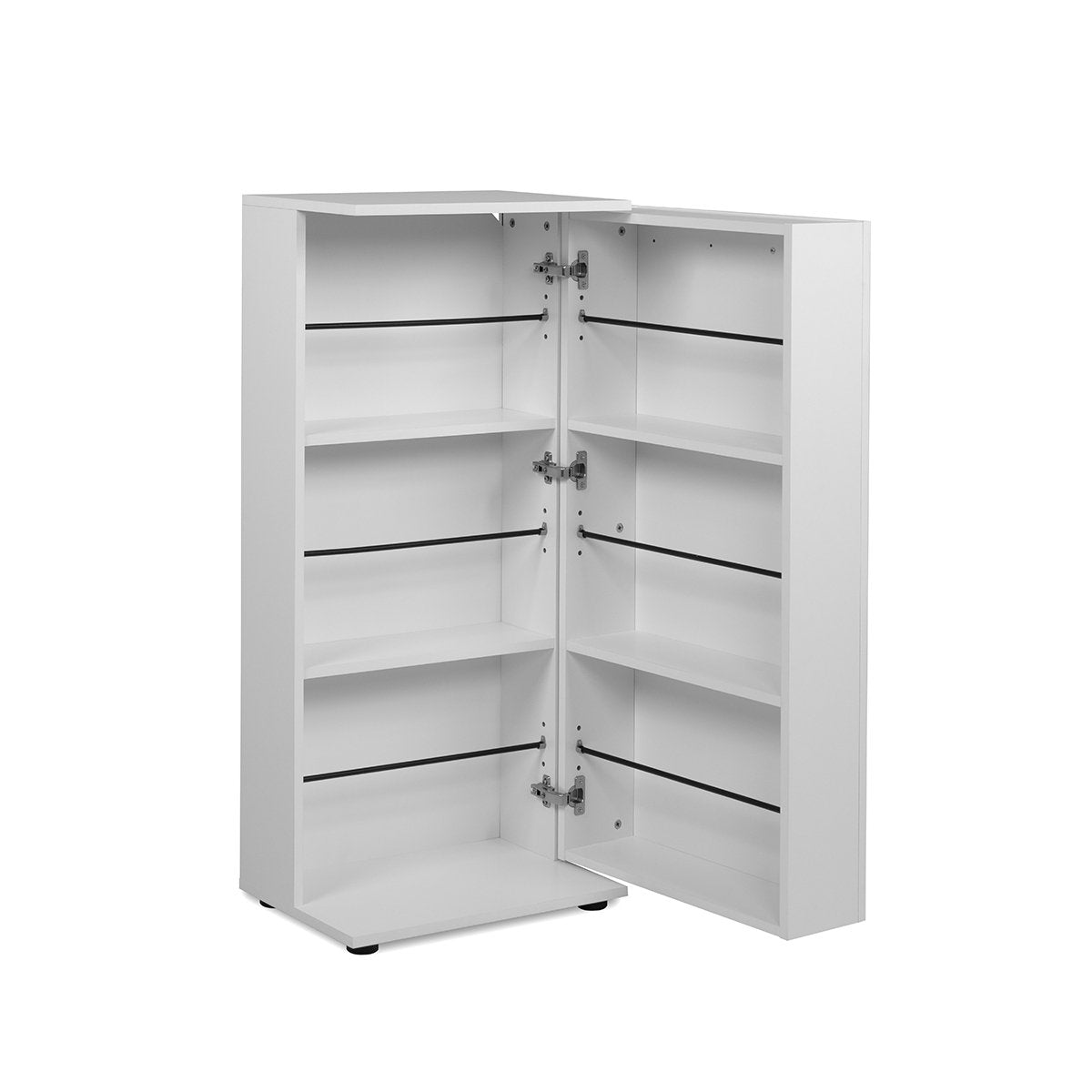 Productkenmerken: Handgrepen en poten van plastic. 1x muurbevestigingsset inbegrepen. 6 compartimenten met 6 plastic staven voor het opbergen van schoenen. Ruimte voor 12 paar schoenen. Verkrijgbaar in drie kleuren: wit, beige of eikenhout. Productafmetingen: Lengte 50 cm x breedte 34 cm x hoogte 110 cm - Nettogewicht 22 kg. Verpakkingsafmetingen: Verpakking nr. 1: Lengte 110 cm x hoogte 9 cm x diepte 52 cm - Bruto gewicht: 24 kg.