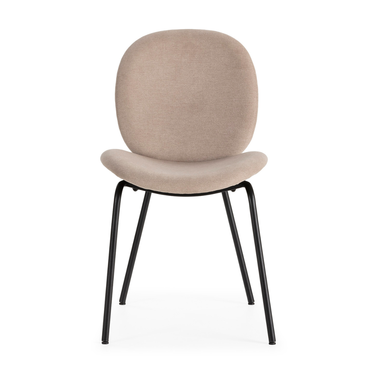 - Zit- en rugleuning: Stof, poten van zwart gelakt metaal.