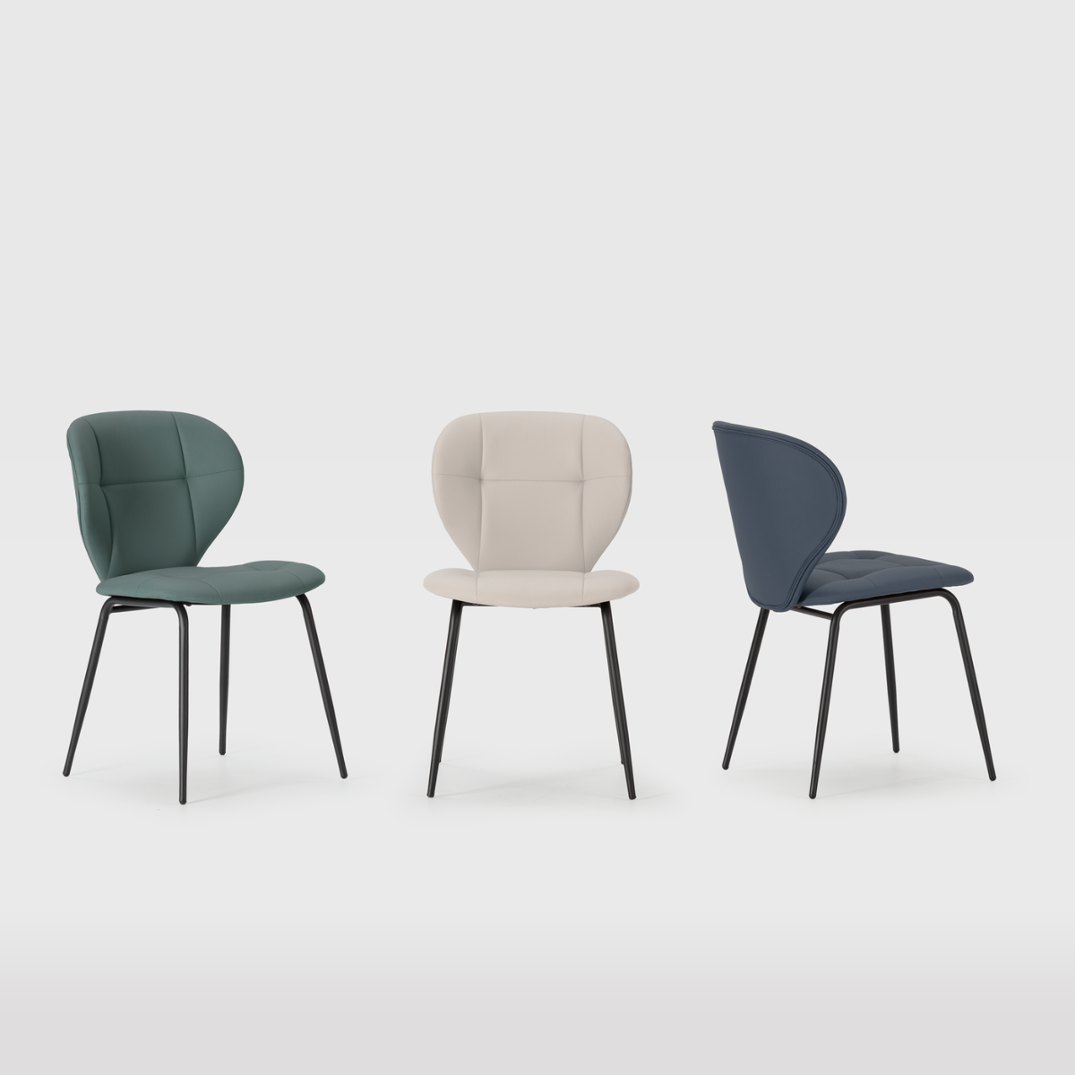 - Zit- en rugleuning: PU-leer, poten van zwart gelakt metaal.