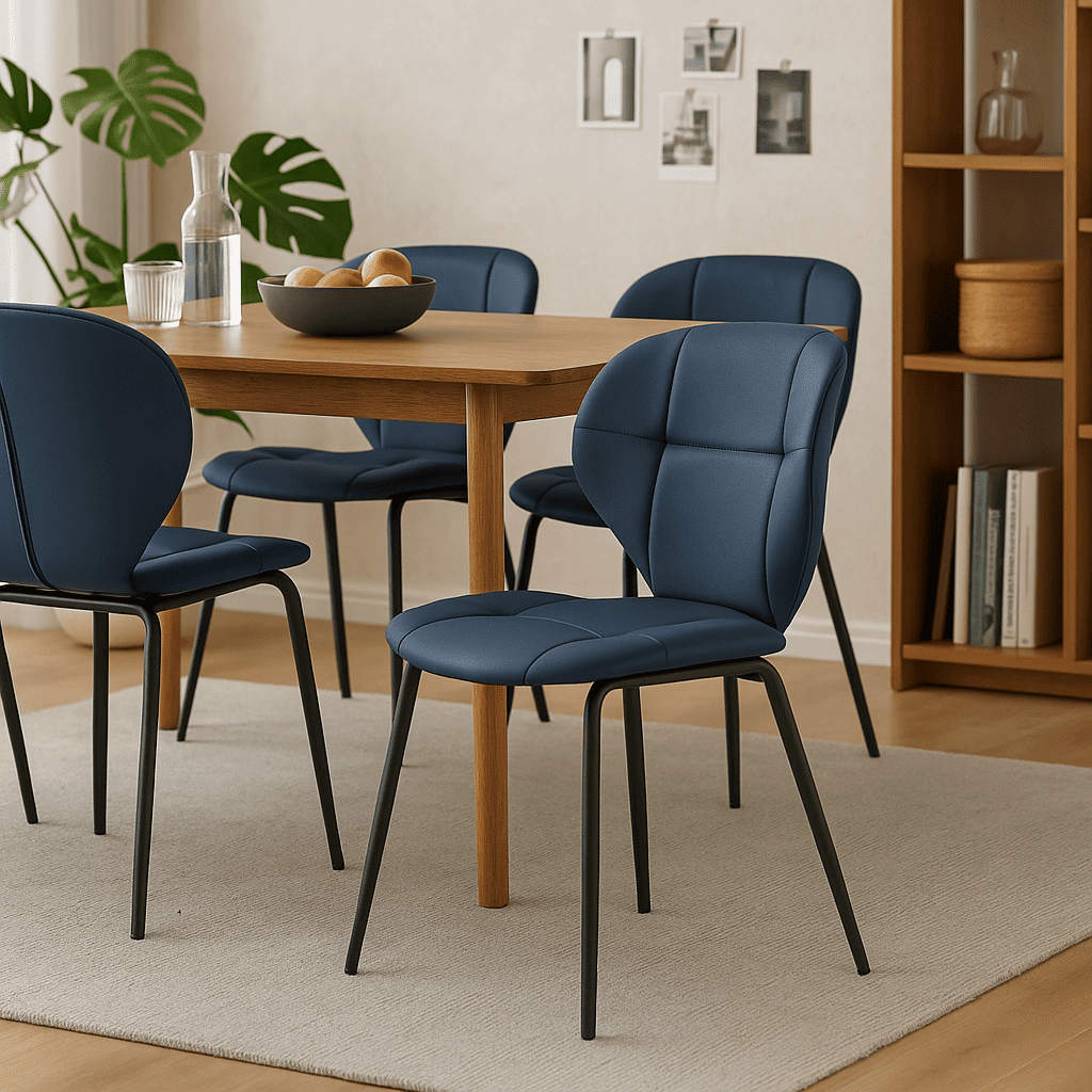 - Zit- en rugleuning: PU-leer, poten van zwart gelakt metaal.