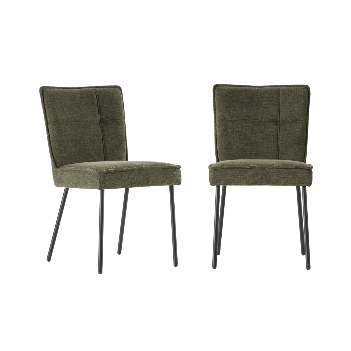 - Set van 2 stoelen van stof met metalen poten.