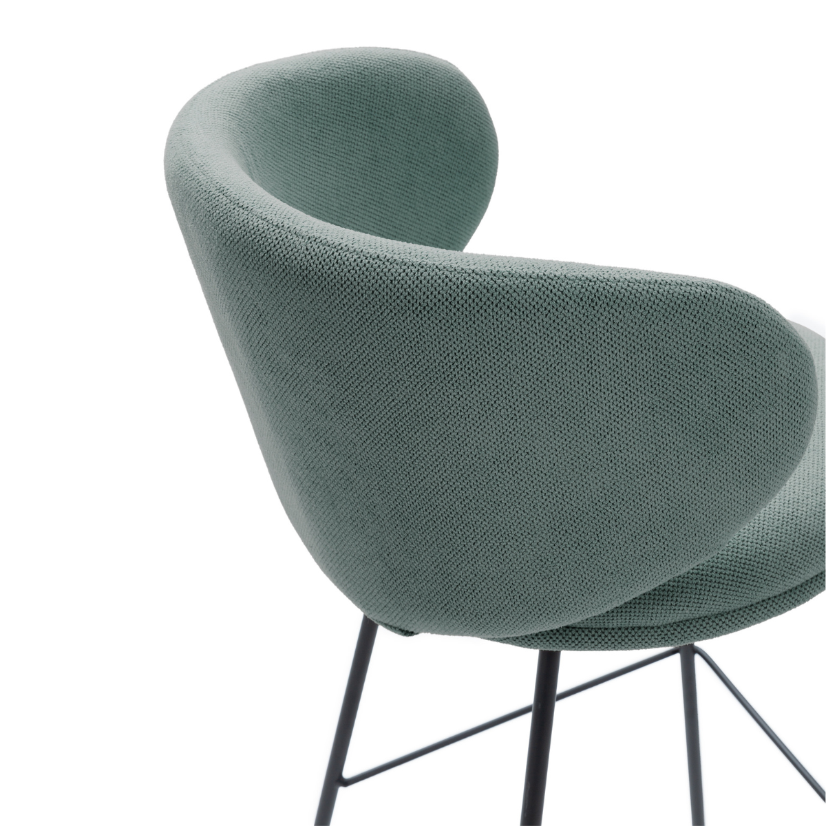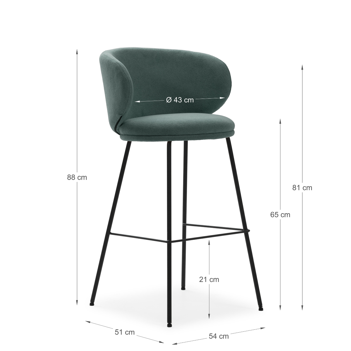 - Zit- en rugleuning: Stof, poten van zwart gelakt metaal.