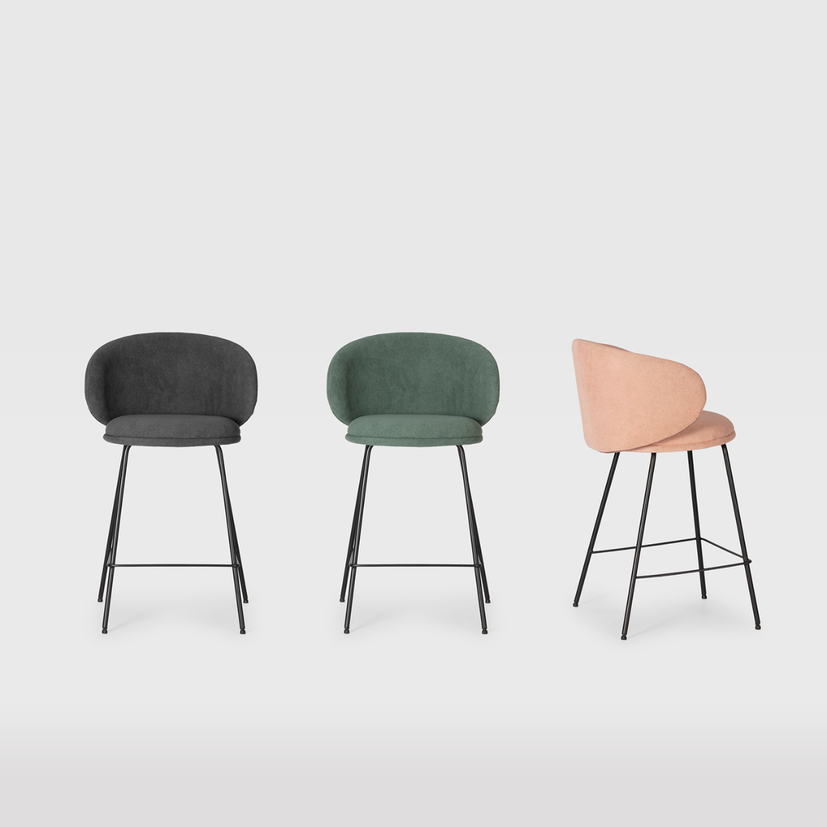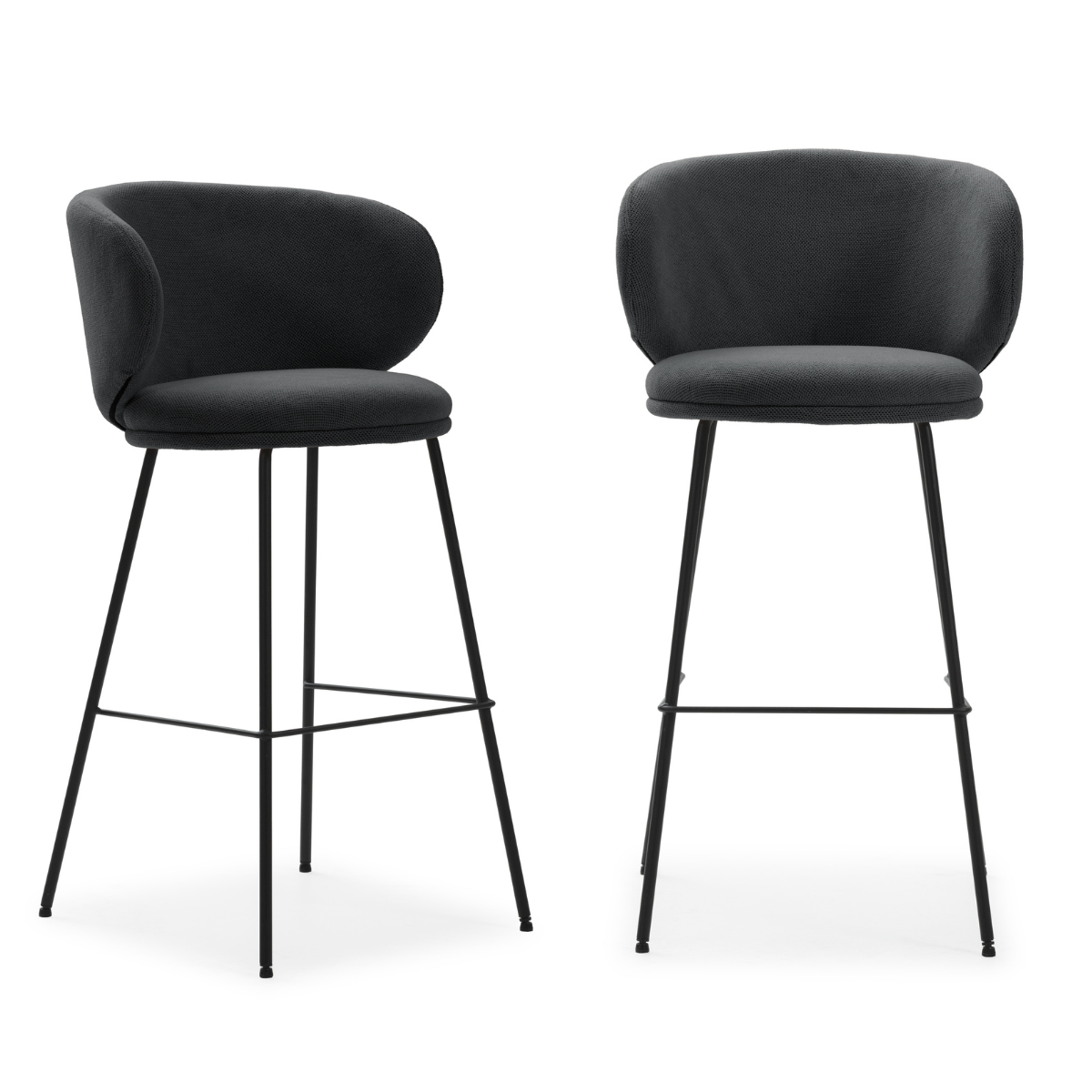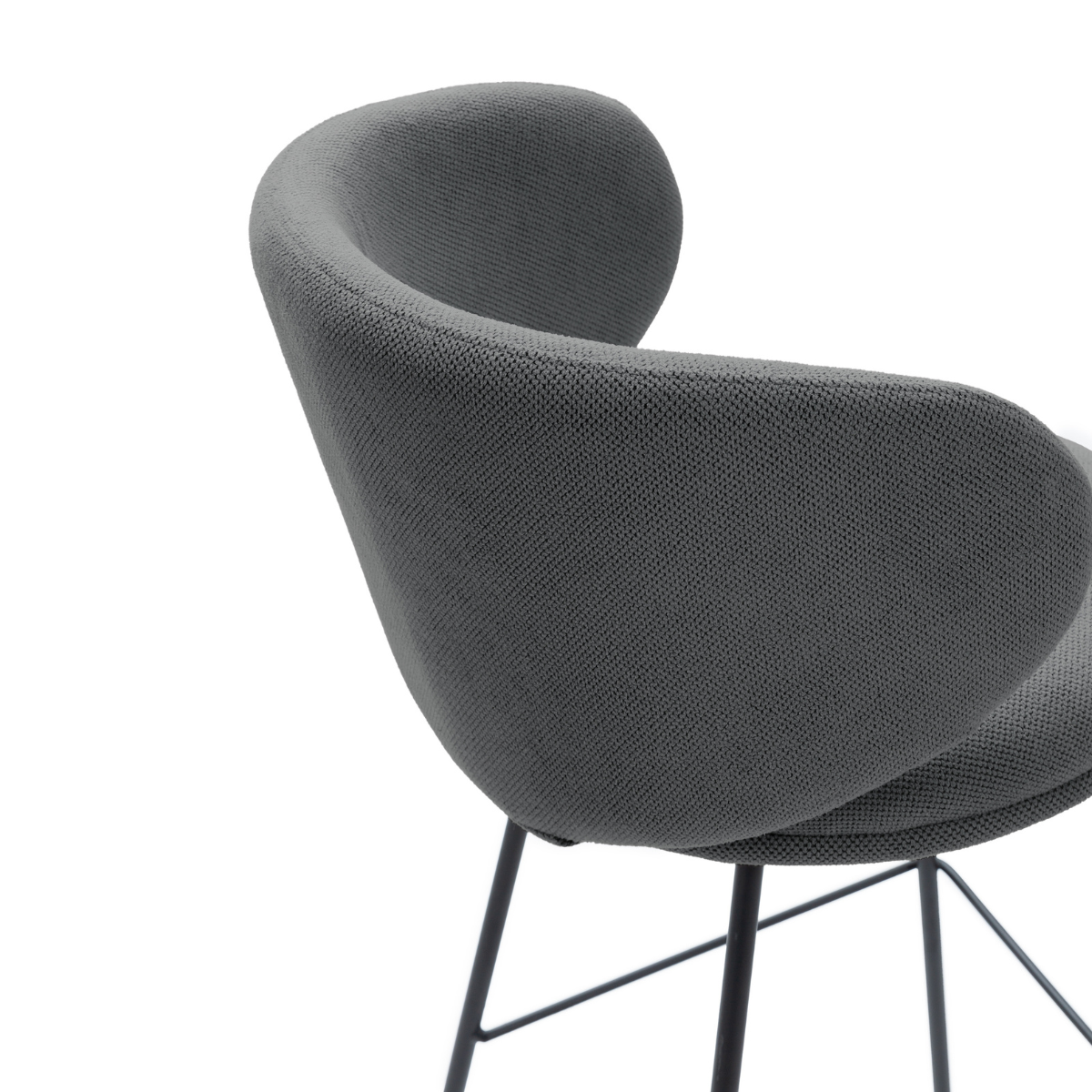 - Zit- en rugleuning: Stof, poten van zwart gelakt metaal.