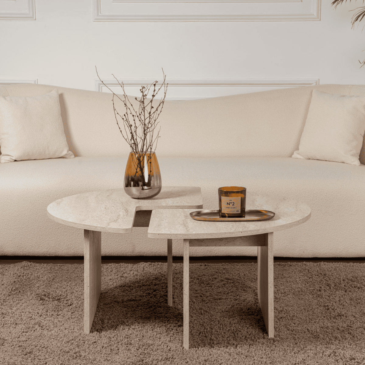 - Set van 2 salontafels. Gemaakt van 100% melamine gecoate spaanplaat, ontworpen voor duurzaamheid.
