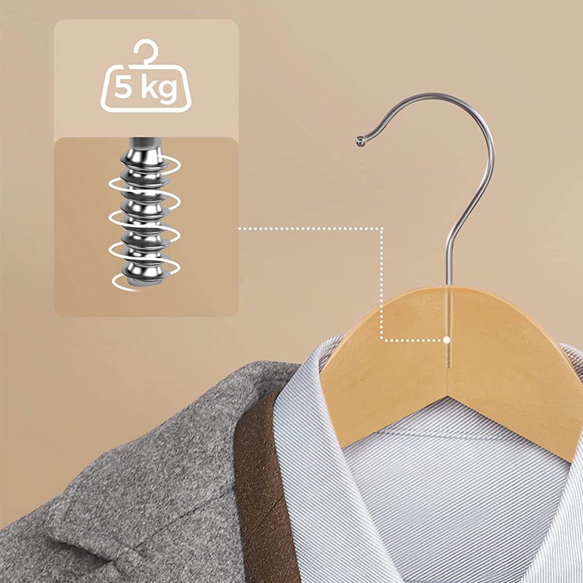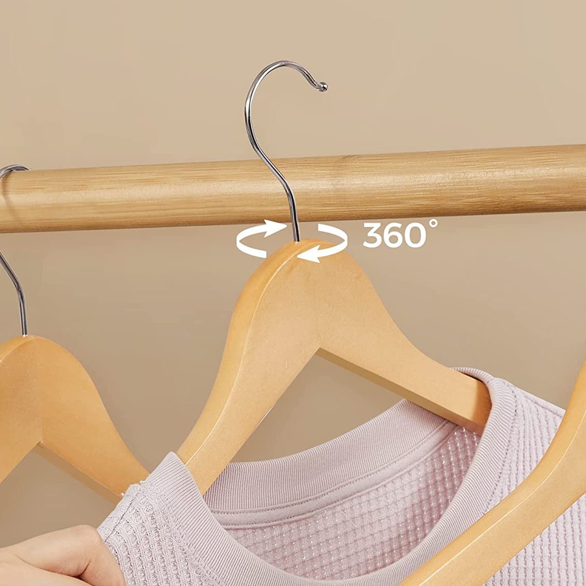 Ontdek onze set van 20 kleerhangers van eucalyptus hout met schouderinkepingen, broekstang en 360 graden draaibare haak om uw kledingkast optimaal te organiseren. De kleerhangers bieden ruimte voor tops, jassen en broeken dankzij de broekstang. Productkenmerken: Hoofdmateriaal: Eucalyptus hout. Schouderinkepingen. Broekstang. 360 graden draaibare haak. Productafmetingen: Breedte 44,5 cm x Hoogte 23 cm x Diepte 1,2 cm - Netto gewicht: 2,3 kg. Verpakkingsafmetingen: Verpakking nr. 1: Hoogte 33 cm x Breedte 36 cm x Diepte 13 cm - Bruto gewicht: 2,5 kg.