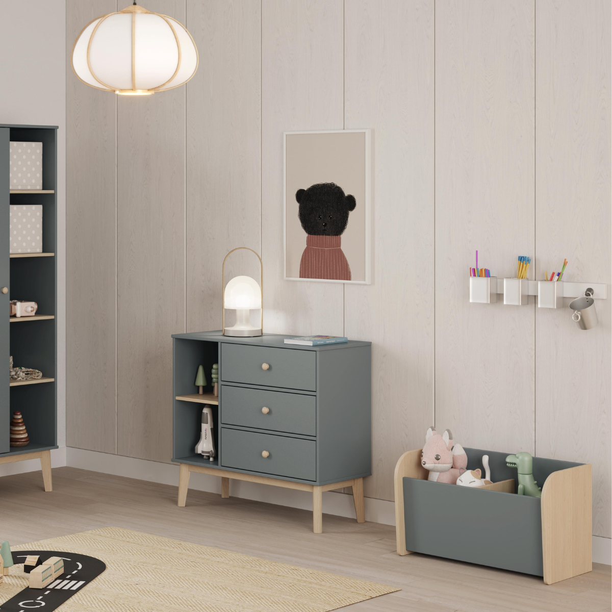 - Twee beschikbare kleuren: Wit gelakt en licht hout of Khakigroen gelakt en licht hout.