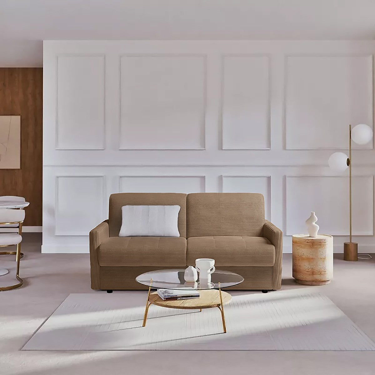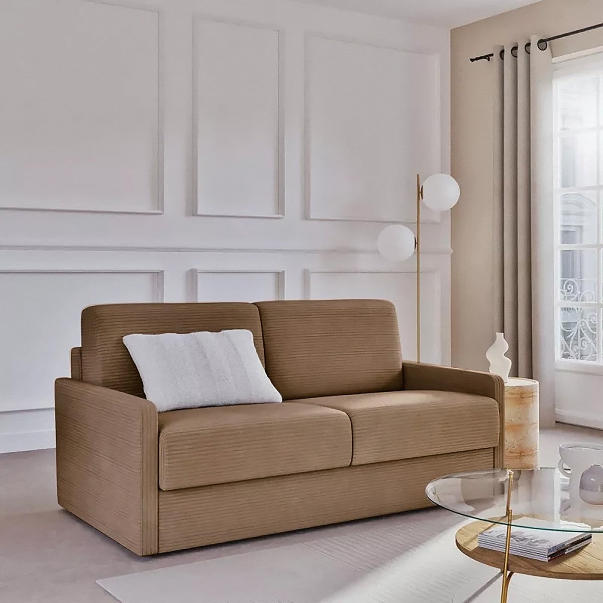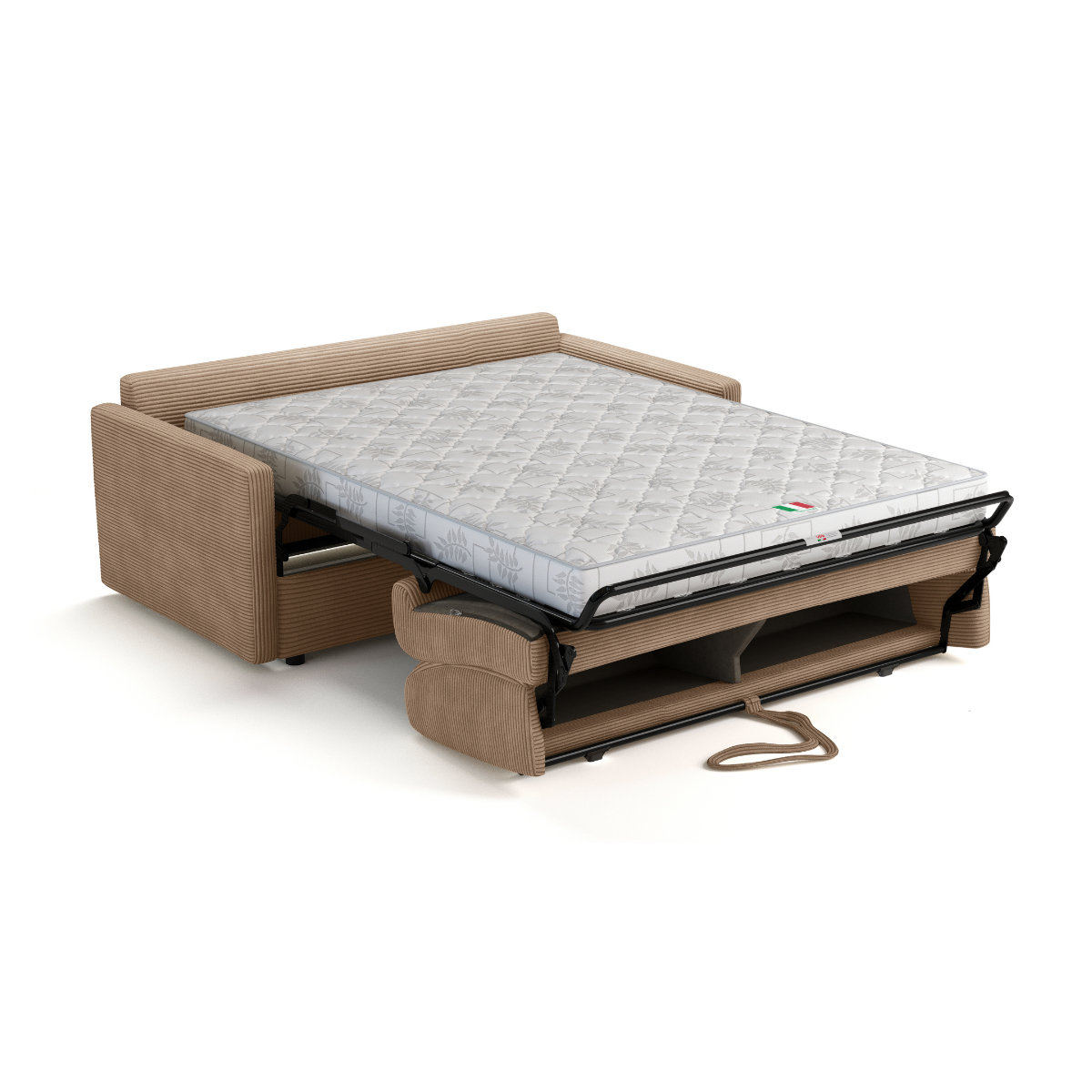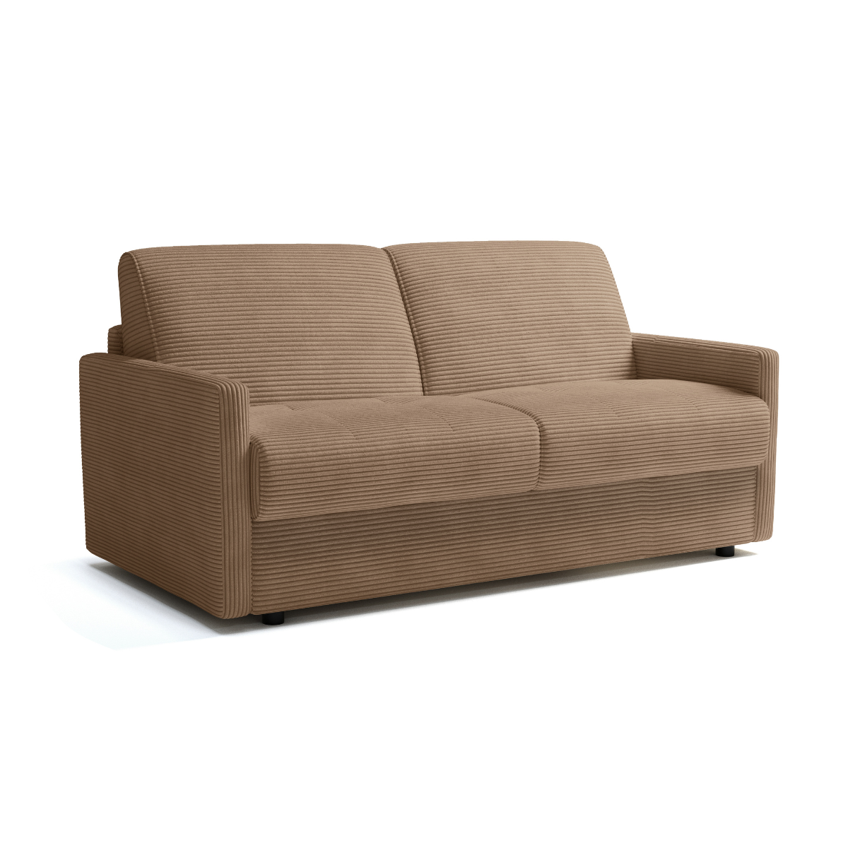 Productkenmerken: Omvormbare 3-zitsbank met fluwelen ribstof Lincoln 03 ivory. Snelle opening. Slaapplaats van 140x190 cm. Rugleuning met kussenopbergruimte. Verwijderbare armleuningen. Afneembare zittingen. VULLING: Polyurethaanschuim met verschillende dichtheden (zitkussendichtheid: 30 kg/m3, rugkussendichtheid: 18 kg/m3). BEDSYSTEEM: Dubbel opvouwbaar elektro-gelast bedframe met een matras van 14 cm hoogte in jacquard/stretch stof. Productafmetingen: Lengte 175 cm x breedte 100 cm x hoogte 87 cm - Nettogewicht: 90 kg. Pakketafmetingen: Pakket nr. 1: Lengte 162 cm x hoogte 89 cm x diepte 102 cm - Brutogewicht: 81 kg. Pakket nr. 2: Lengte 18 cm x hoogte 62 cm x diepte 102 cm - Brutogewicht: 11 kg. Totaal brutogewicht: 92 kg.