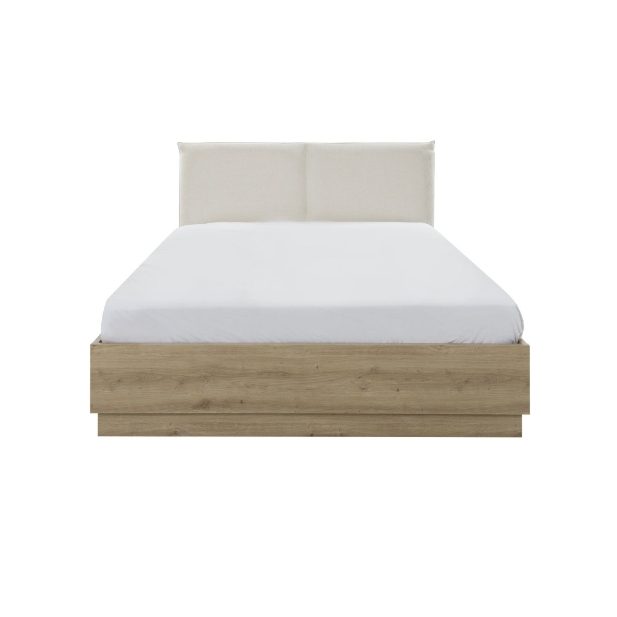 - Opbergbad met hoofdbord in beige stof 160 x 200 cm.
