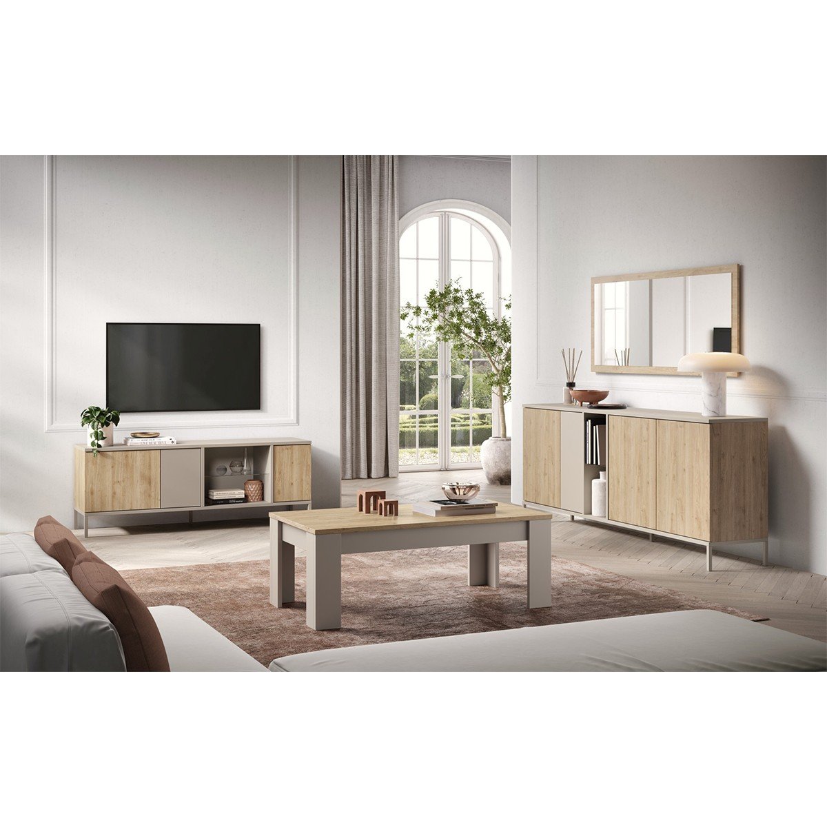 Productkenmerken: Italiaanse fabricage. FSC-gecertificeerd, wat betekent dat de gebruikte materialen vervaardigd zijn van 100% gerecycled hout of vezels. 3 deuren. 1 glazen plank. 1 nis. Metalen poten. Push-pull opening. Productafmetingen: Lengte 160 cm x Hoogte 59 cm x Breedte 43 cm - Nettogewicht: 41,26 kg. Afmetingen van de verpakking: Verpakking nr. 1: Lengte 169 cm x Breedte 46,5 x Diepte 5,5 cm - Bruto gewicht: 22 kg. Verpakking nr. 2: Lengte 103,5 cm x Breedte 46,5 x Diepte 9,5 cm - Bruto gewicht: 20,1 kg.