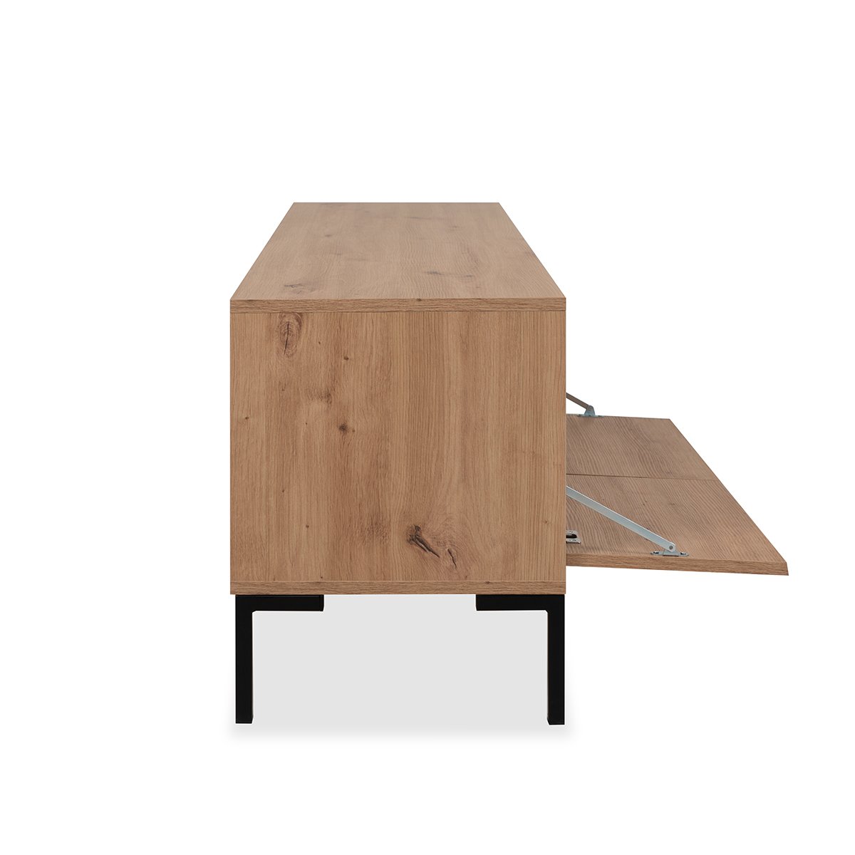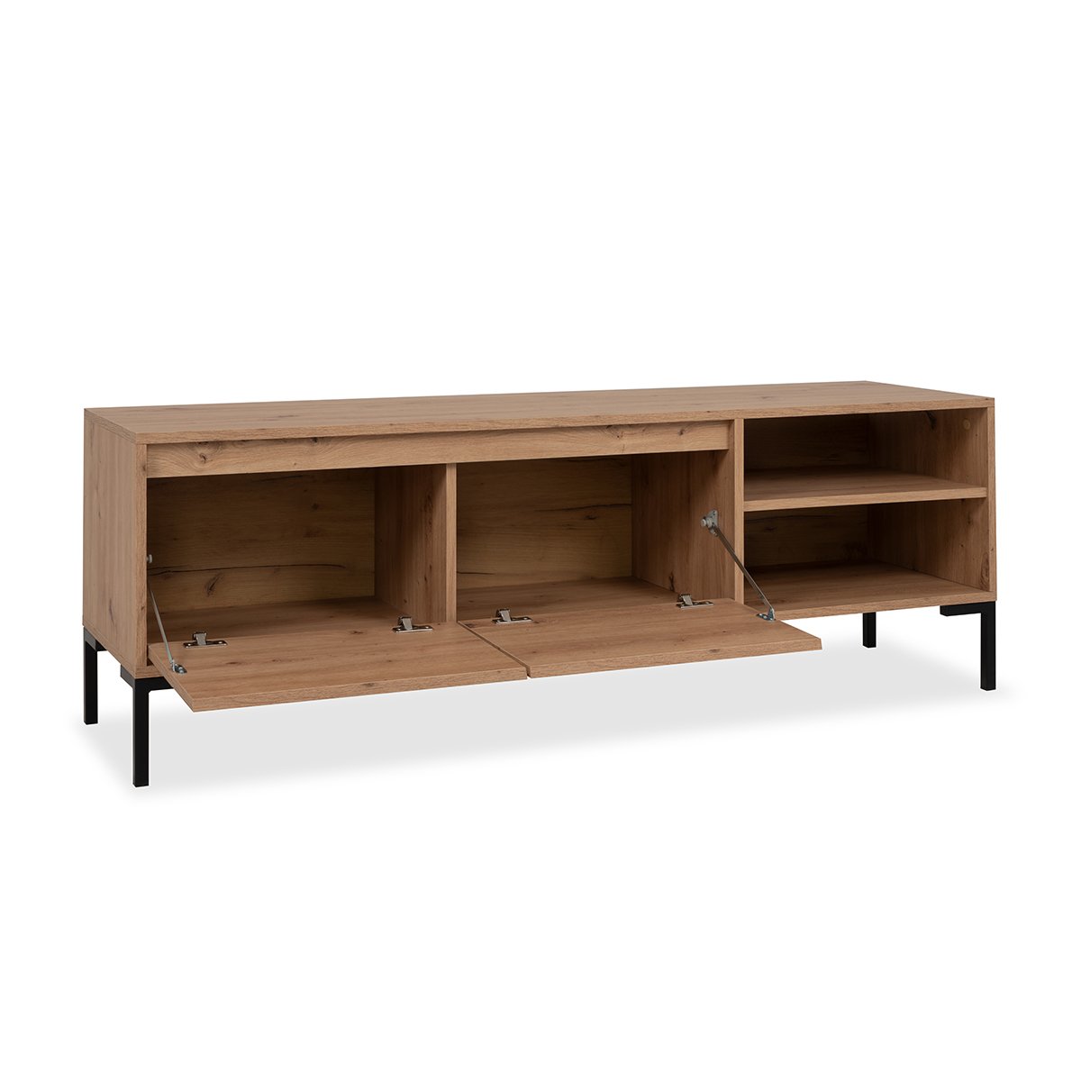 Ontdek onze TV-meubel met 2 deuren en 2 vakken L150 cm - Plock. De lengte van het meubel biedt plaats aan grote televisies en alle bijbehorende accessoires. De deuren zijn erg handig voor dagelijks gebruik. Het ambachtelijke eiken decor past perfect bij alle interieurstijlen en zorgt voor een warme uitstraling. Productkenmerken: Materialen: Spaanplaat / Metalen poten. 2 vakken. 2 deuren. Ambachtelijk eiken decor. Productafmetingen: Lengte 150 cm x Breedte 40 cm x Hoogte 49 cm - Nettogewicht: 27 kg. Pakketafmetingen: Pakket nr. 1: Lengte 172,5 cm x Hoogte 49 cm x Diepte 13 cm - Brutogewicht: 27,5 kg.
