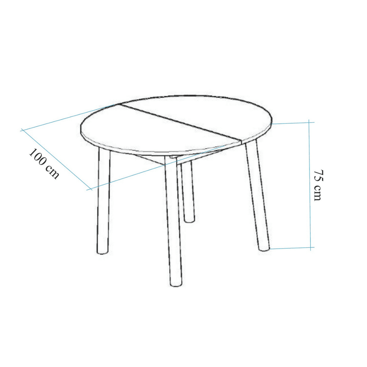 - Uitgeschoven tafel: Lengte 139 cm x Hoogte 75 cm x Diepte 100 cm.