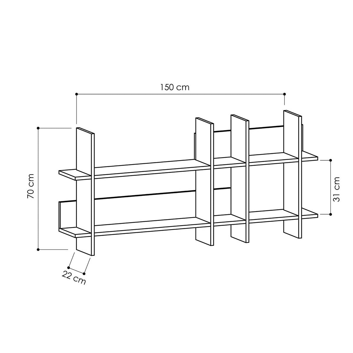 Productkenmerken: Gemaakt van 100% gelamineerde spaanplaten. FSC-gecertificeerd, wat aangeeft dat het product is gemaakt van 100% gerecycled hout uit duurzaam beheerde bossen. Het kan eenvoudig aan de muur worden bevestigd, waardoor u vloerruimte bespaart. Productafmetingen: breedte 22 cm x lengte 150 cm x hoogte 70 cm - Nettogewicht: 17,3 kg. Verpakkingsafmetingen: Verpakking nr. 1: lengte 159,5 cm x hoogte 27,5 cm x diepte 14 cm - Brutogewicht: 17,84 kg.