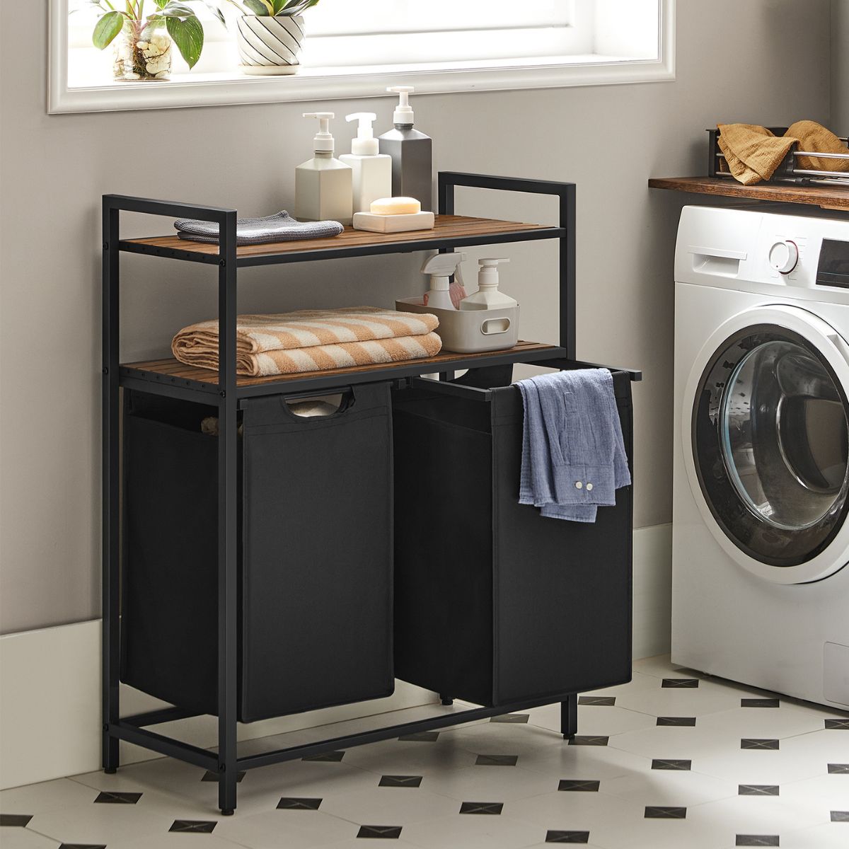 Calicosy - Wasmand met 2 compartimenten en 2 planken - H92 cm - Zwart
