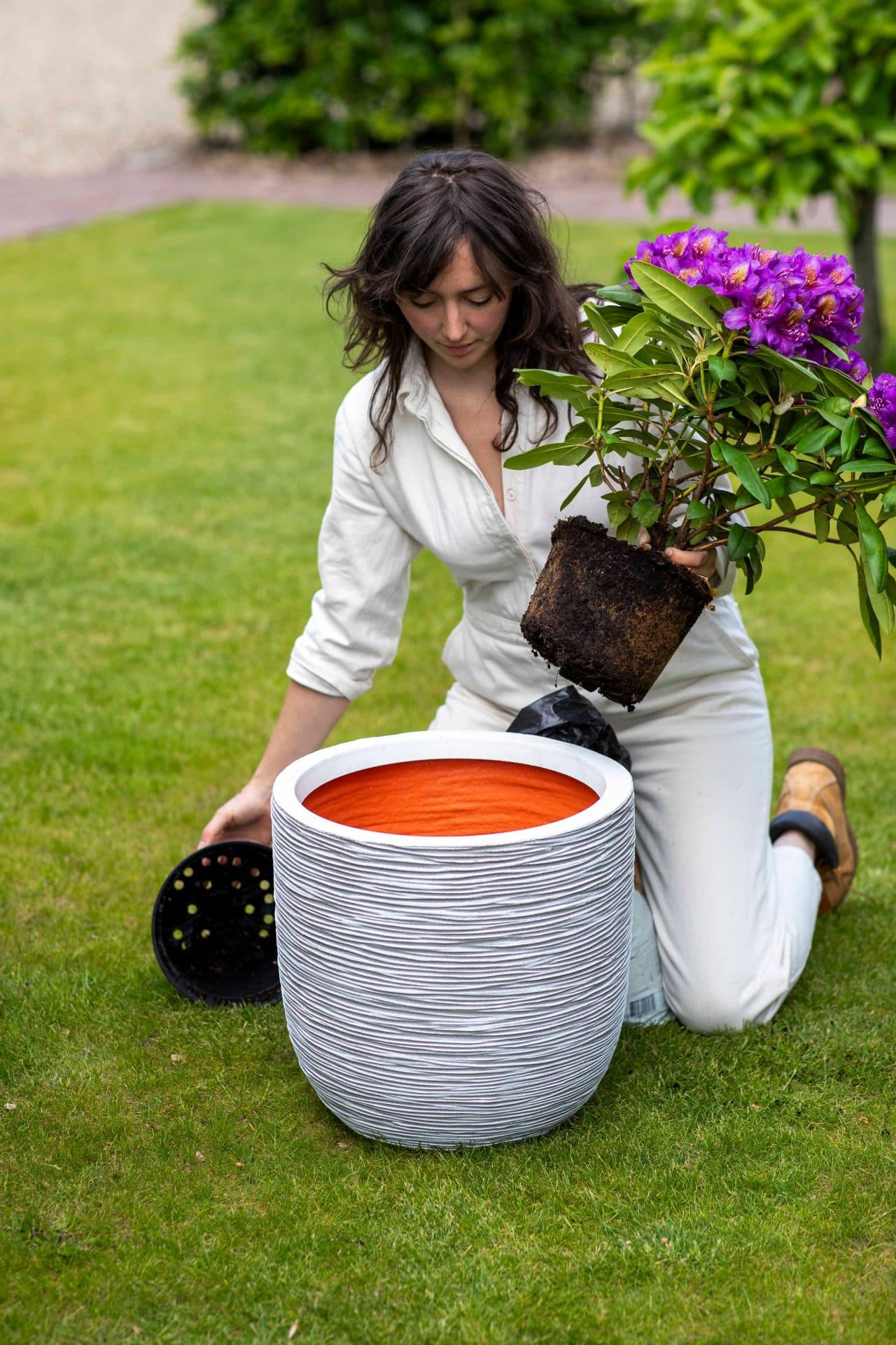 - BINNEN EN BUITEN | De bloempot is 100% waterdicht en daarom perfect voor gebruik binnenshuis. Voor buiten boor je een gat van 25mm in de bodem.