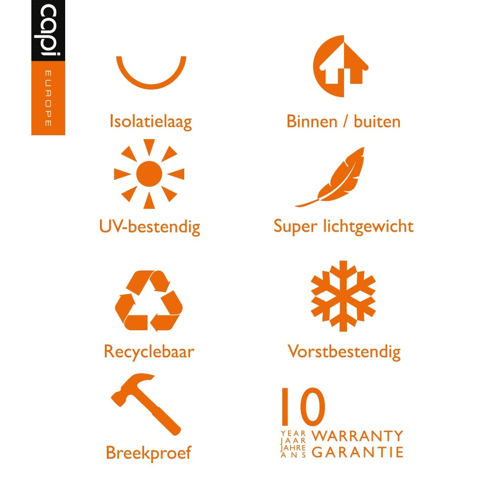 Capi Europe maakt bijzondere design bloempotten voor binnen en buiten. Met verschillende stijlen en texturen is er voor iedereen een passende bloempot. Een deel van de productie vindt plaats in de fabriek in Tilburg. Naast het eigentijdse design hebben Capi bloempotten een hoge kwaliteit. Ze licht van gewicht – ondanks het robuuste exterieur – en ze zijn weerbestendig.