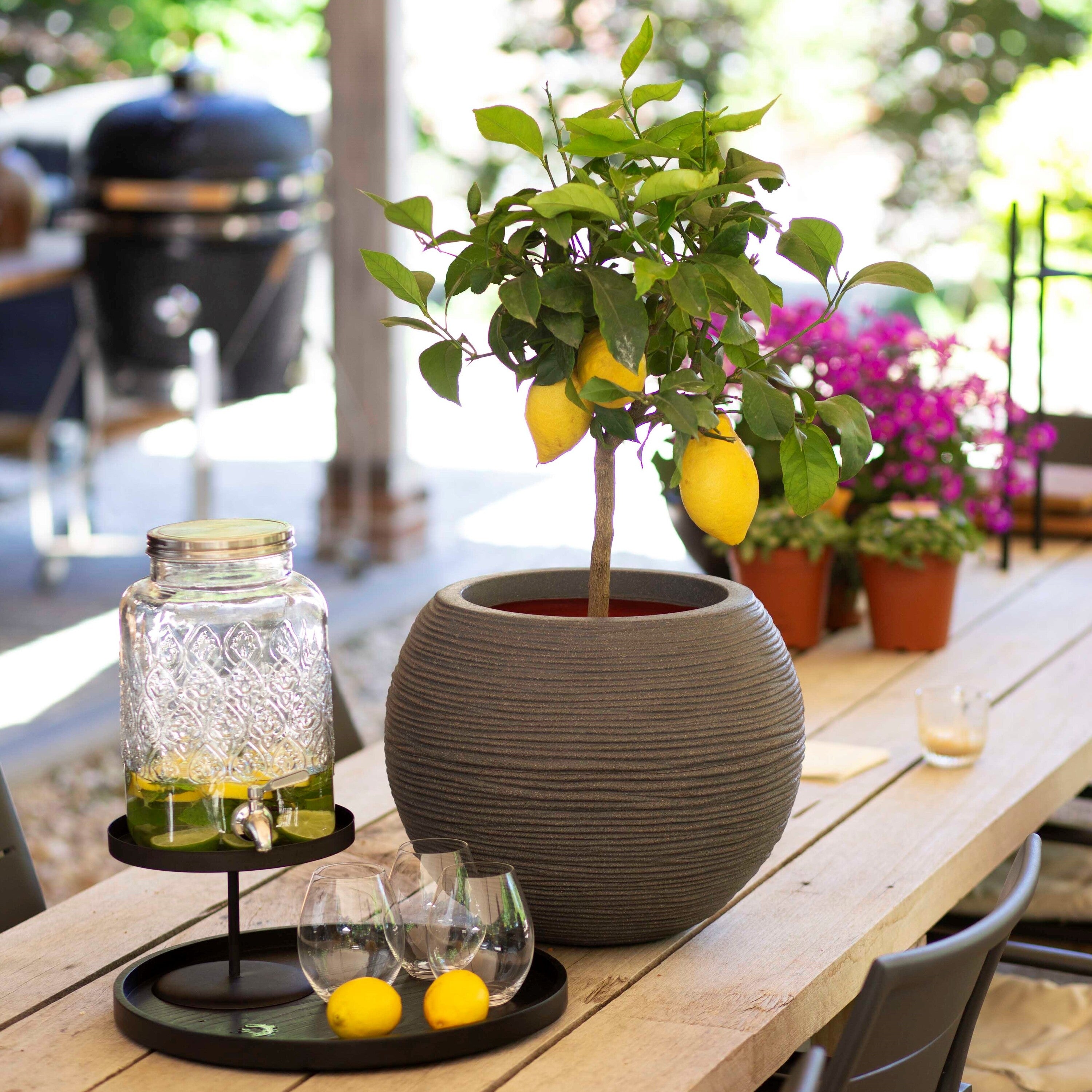 - De pot is vorstbestendig, dus laat hem gerust buiten staan!