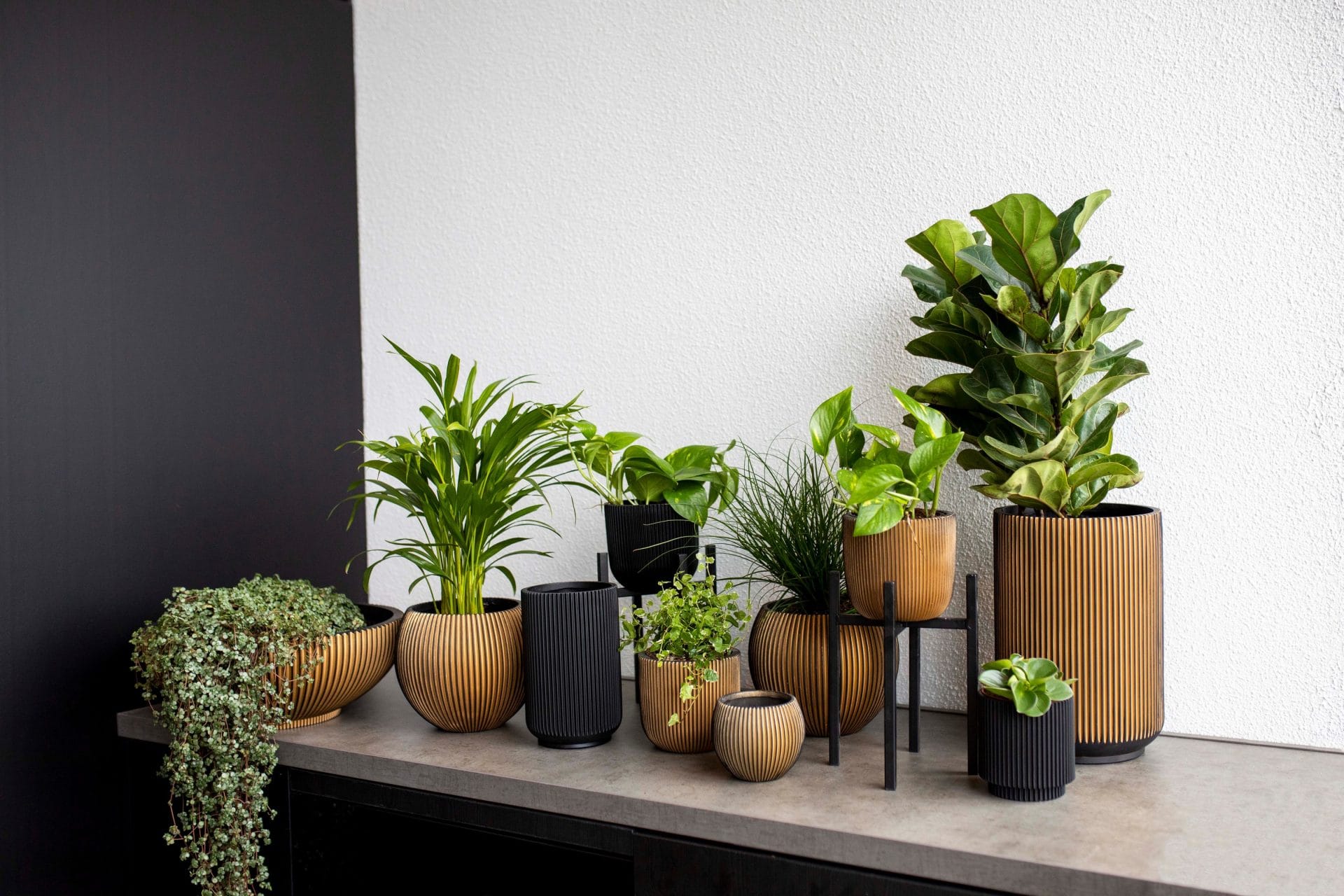 De Groove Black & Gold collectie is, zoals de naam al zegt, geïnspireerd op groeven. Vooral op de verticale groeven in stenen en bergen die zijn ontstaan in de loop van de jaren. Een collectie geïnspireerd op grote veranderingen van de natuur. Een speelse en stoere collectie binnen onze indoor nature-lijn. De Nature Groove collectie is handgemaakt, waardoor elke pot uniek is. De gouden kleur geeft deze textuur een warme, maar ook luxe look. Een echte eyecatcher bij jou thuis.