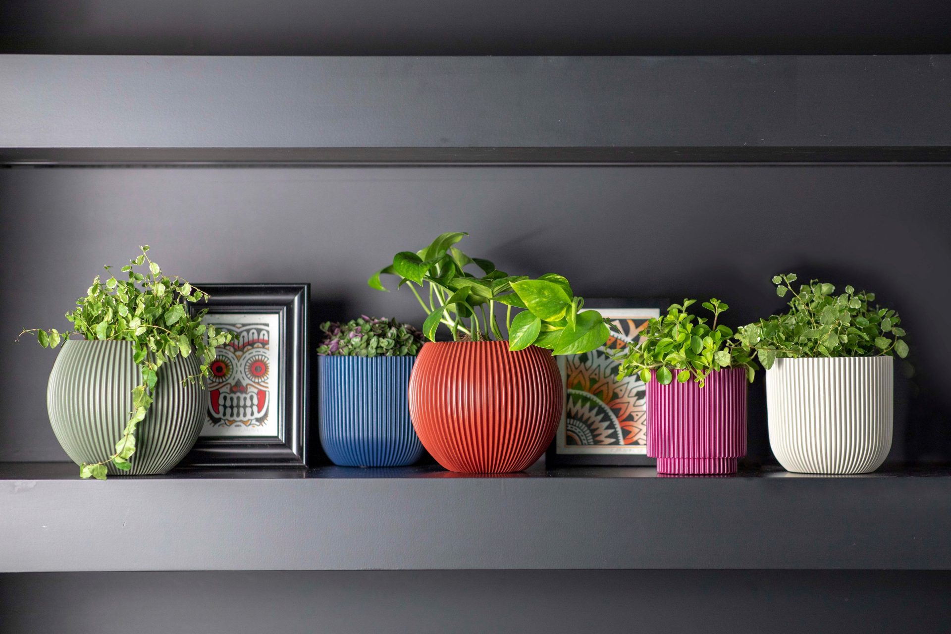 Binnen de collectie heb je de keuze uit drie verschillende modellen in verschillende maten, elk met opvallende groeven die textuur en visuele waarde toevoegen aan je interieur. Deze potten zijn niet alleen een praktische manier om je favoriete planten in te zetten, maar dienen ook als prachtige decoratieve accenten die de sfeer van elke kamer verbeteren.