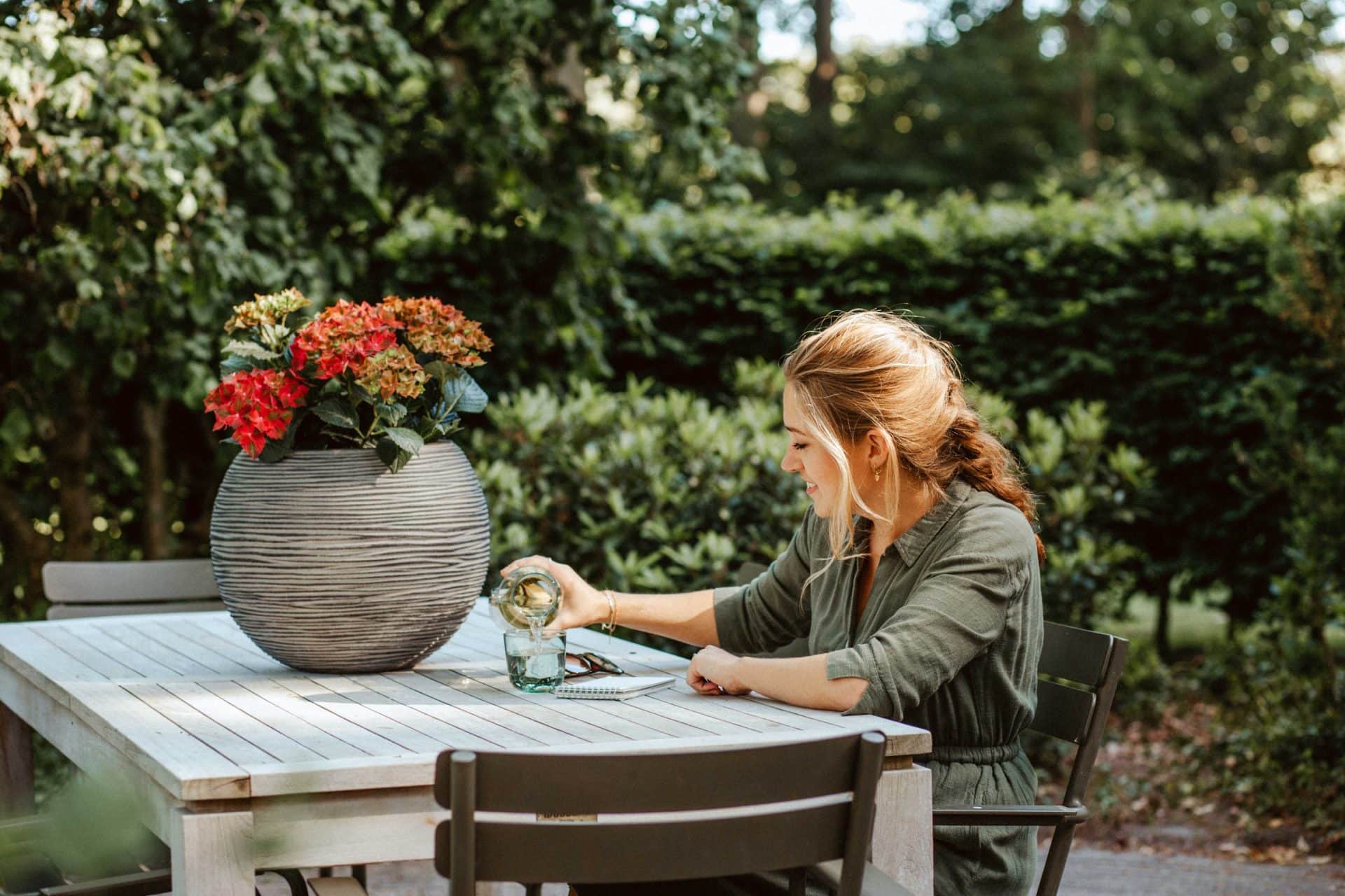 De bloempot is 100% waterdicht en daardoor perfect geschikt om binnen te gebruiken. Wil je de bloempot buiten gebruiken, zorg dan dat je een afwateringsgat van minimaal 25 mm in de bodem boort.