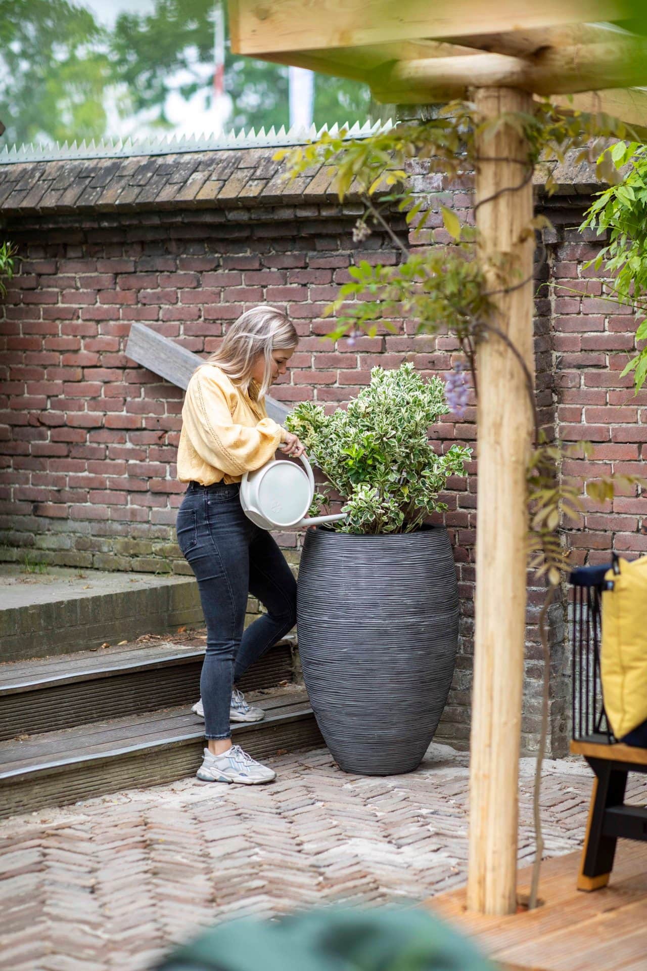 - BINNEN EN BUITEN | De bloempot is 100% waterdicht en daarom perfect voor gebruik binnenshuis. Voor buiten boor je een gat van 25mm in de bodem.