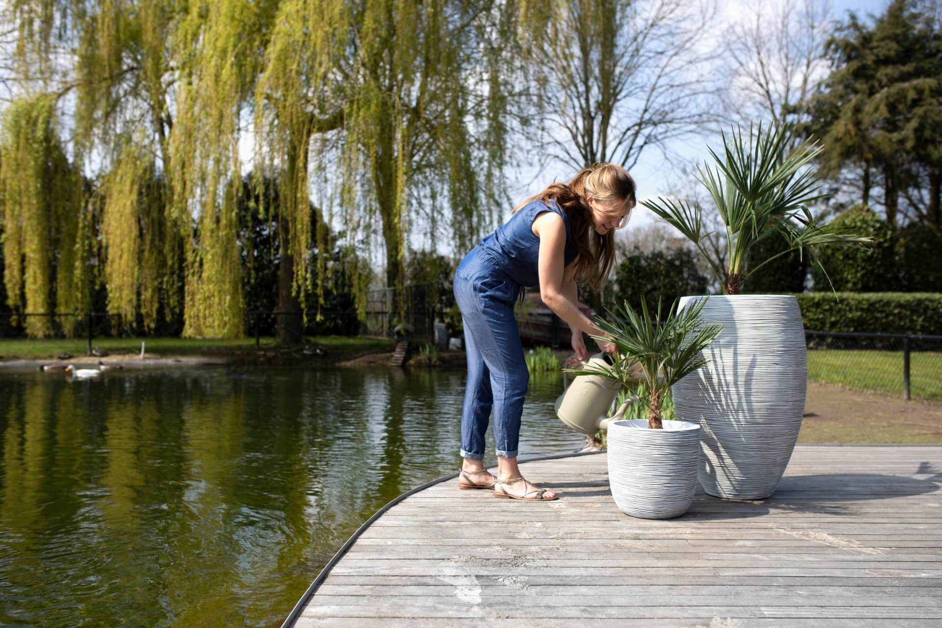 De bloempot is 100% waterdicht en daardoor perfect geschikt om binnen te gebruiken. Wil je de bloempot buiten gebruiken, zorg dan dat je een afwateringsgat van minimaal 25 mm in de bodem boort.