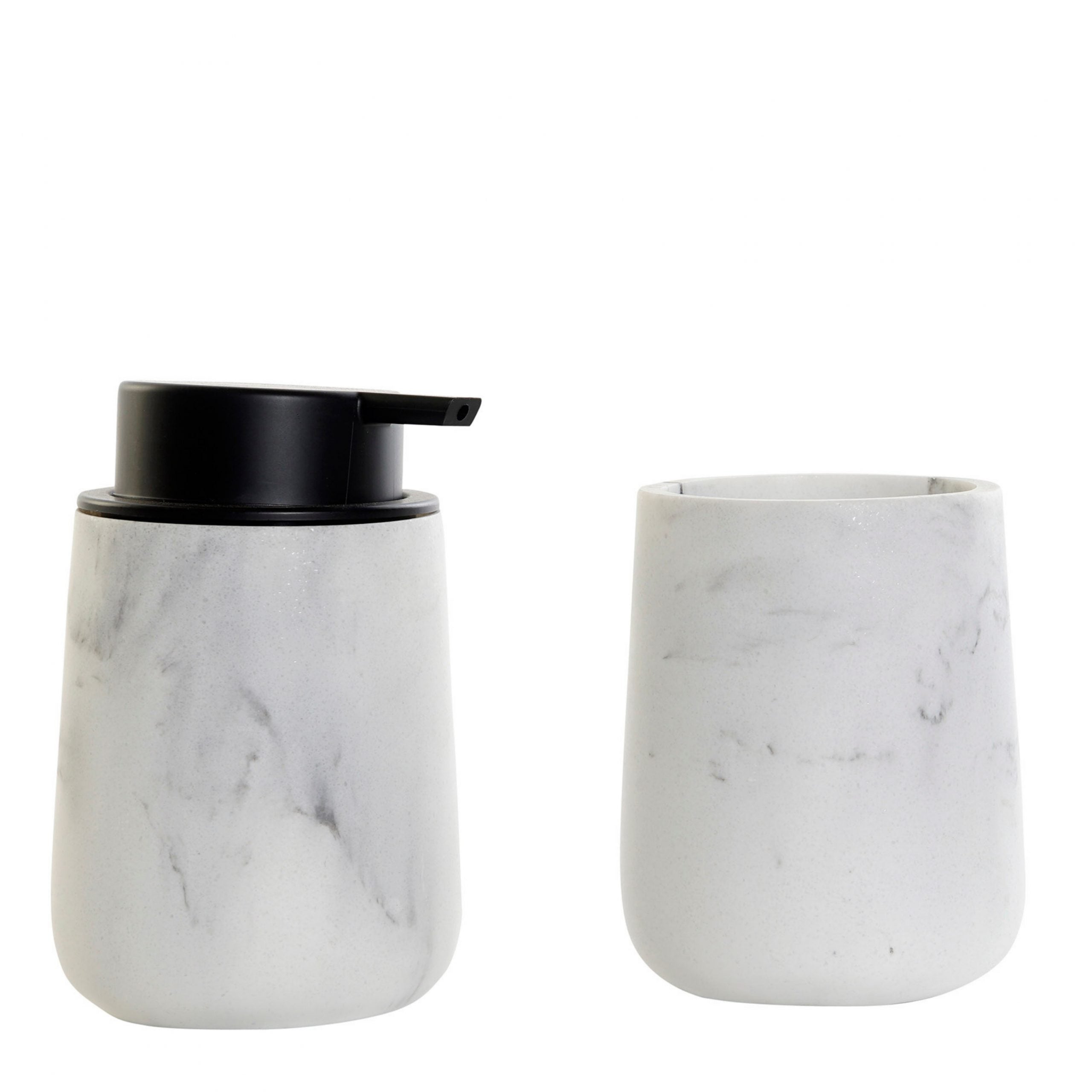 Badkamer set Marble 2-delige badkameraccessoire set van CASA DI ELTURO is een uitgebreide, stijlvolle accessoire set voor je badkamer! Deze badkamer set bevat 2 essentiële badkamerbenodigdheden in Boho Stijl. Combineer deze badkamer set met de bijpassende toiletborstel en maak zo een complete set. De set bevat 1 zeepdispenser, 1 tandenborstelhouder/drinkbeker.