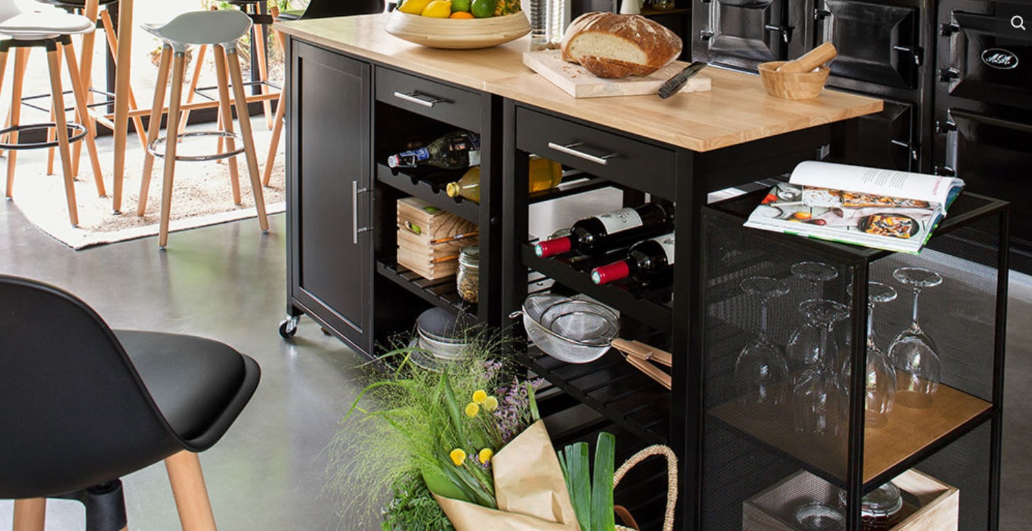CASA DI ELTURO Keukentrolley met 1 lade op wielen - Zwart - L48 x B58