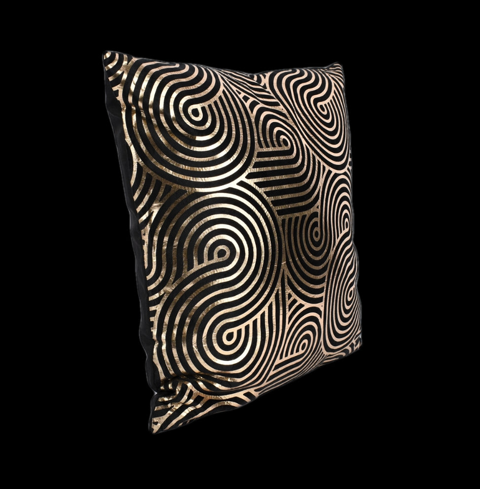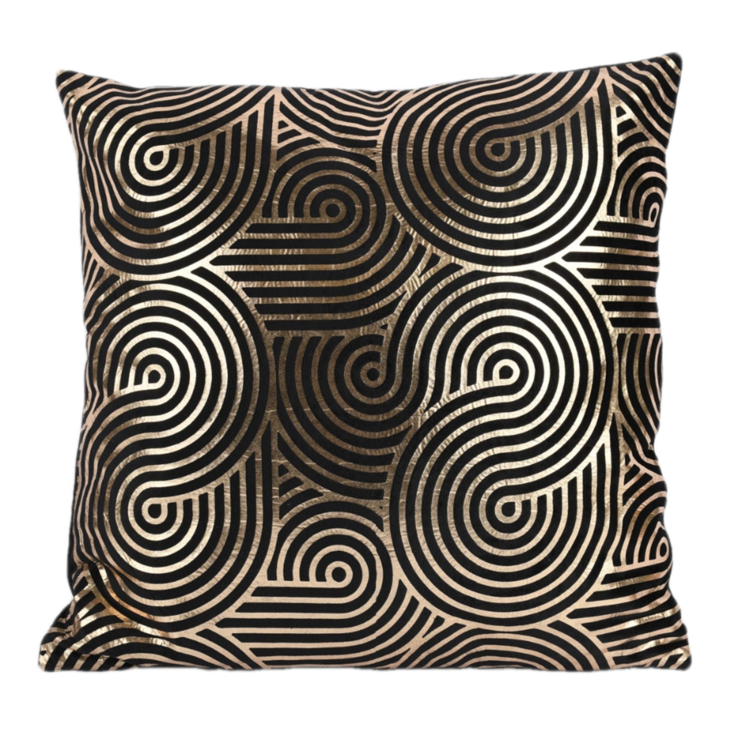 CASA DI ELTURO Sierkussen Velvet Swirl - Zwart & Goud - 45 x 45 cm (in