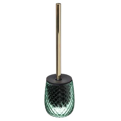 Deze toiletborstel heeft een moderne look door het strakke design. Deze toiletborstel heeft een tijm groen kleur. Het materiaal is van glas. Doordat de houder neergezet kan worden is het makkelijk te verplaatsen en kan er dus goed in de buurt schoongemaakt worden.