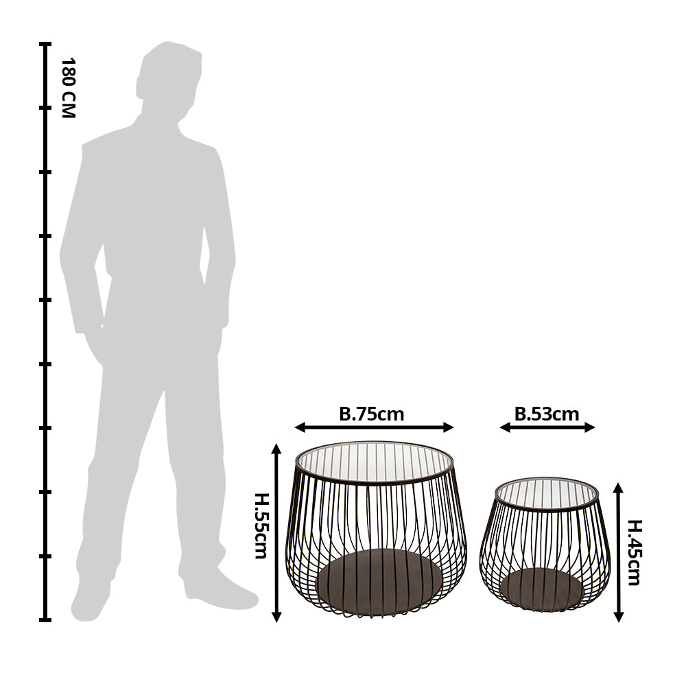 Clayre & Eef Bijzettafel Set van 2 Bruin Ijzer Glas Salontafel