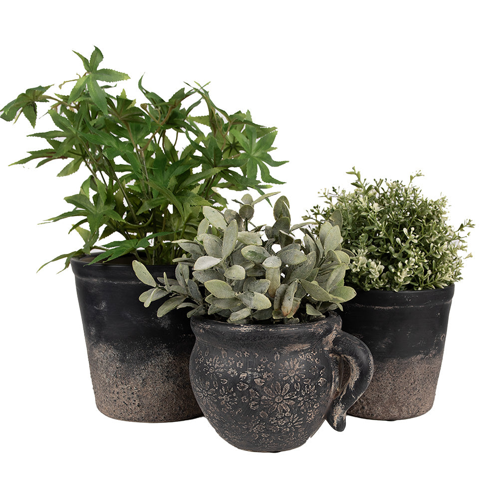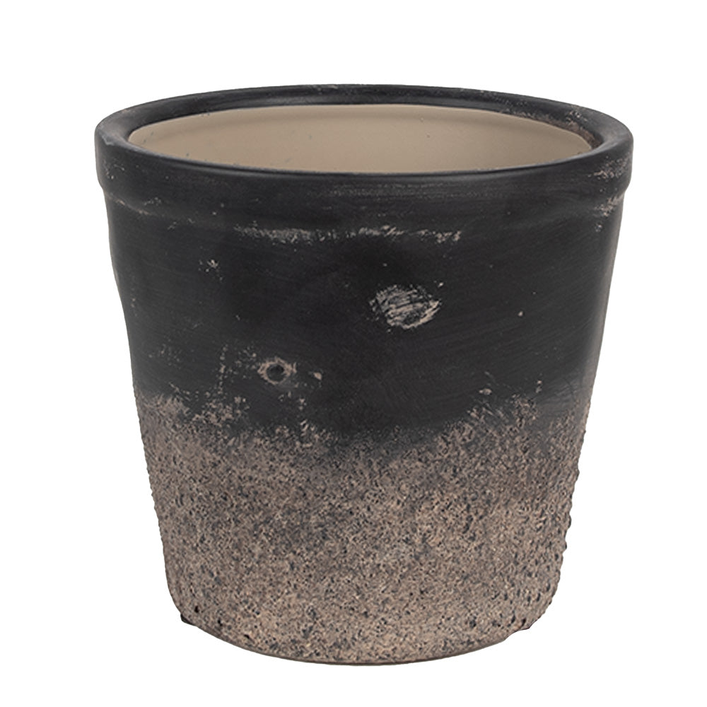 Clayre & Eef Bloempot Binnen Ø 15x14 cm Zwart Bruin Keramiek