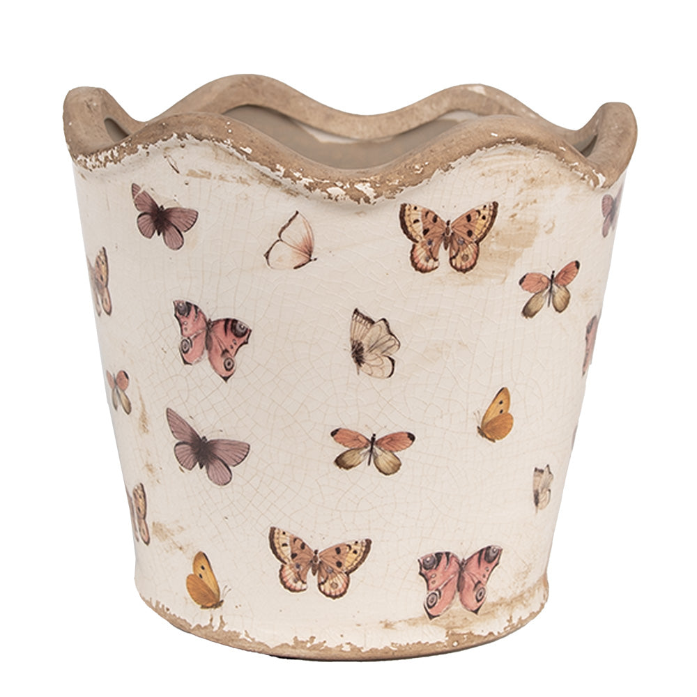 Clayre & Eef Bloempot Binnen Ø 16x15 cm Beige Roze Keramiek Vlinders