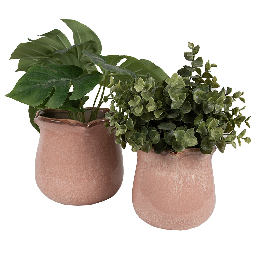 Clayre & Eef Bloempot Binnen Ø 16x15 cm Roze Keramiek Plantenpot